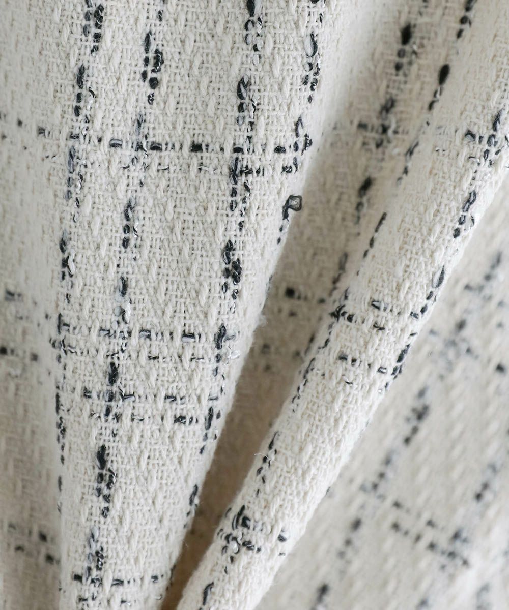 チクチク感のないポリエステル100%ツイード生地を使用しています。表情のある糸使いが着こなしのポイントに。しっかりとした生地感で秋冬シーズンに活躍してくれます。