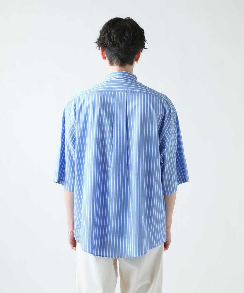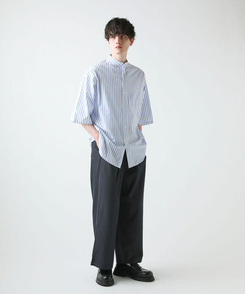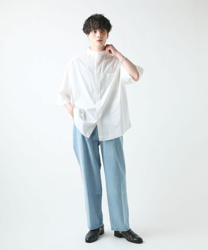 3. ブロードビッグシルエットバンドカラー5分袖シャツ