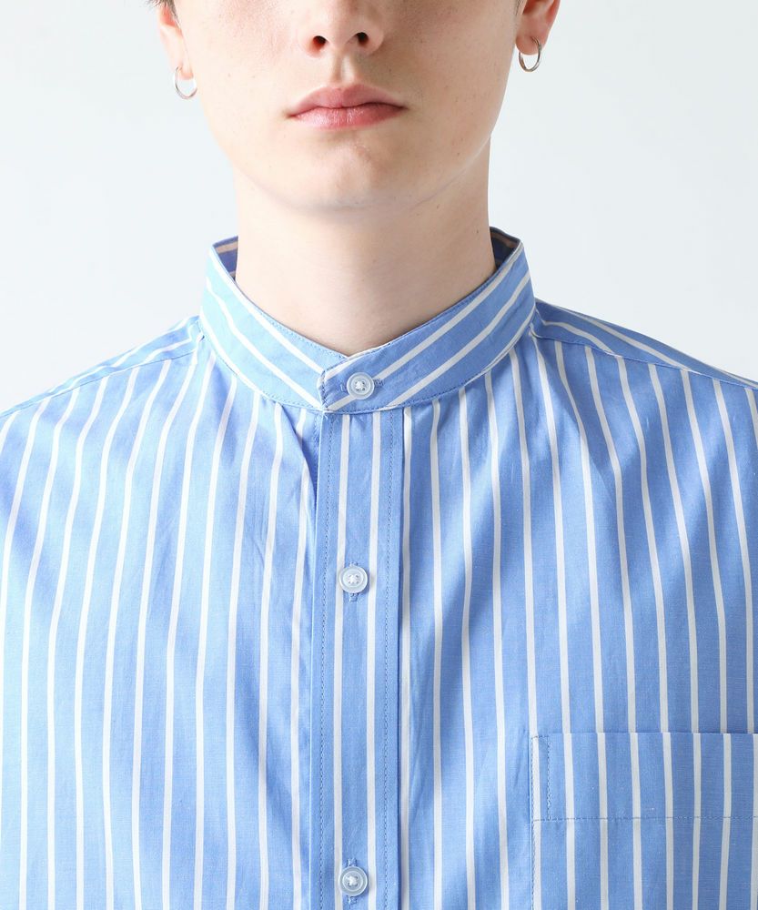 ゆったりとした身幅で抜け感のあるブロードバンドカラーシャツ。バンドカラー仕様ですっきりとした大人な印象をプラス。半袖よりも袖の長い5分袖を採用した清涼感のある爽やかさが魅力。ドロップショルダーのリラックス感あるシルエットで前開けでも1枚でも決まります。爽やかな印象の5分袖ブロードシャツは初夏から秋口まで活躍します。無地とストライプの2パターンで、落ち着いたデザインの6カラー展開。