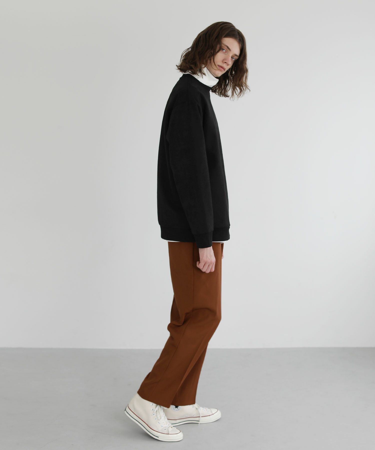 ルーズすぎないサイズ感なので、コートやジャケットのインナー使いがしやすいのもポイント。