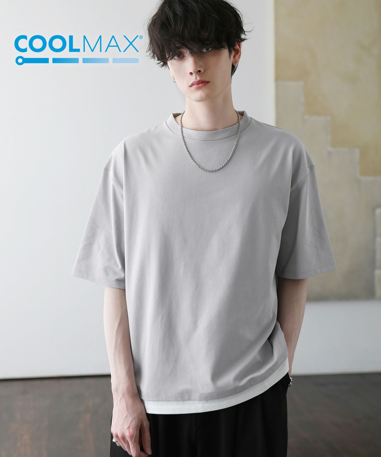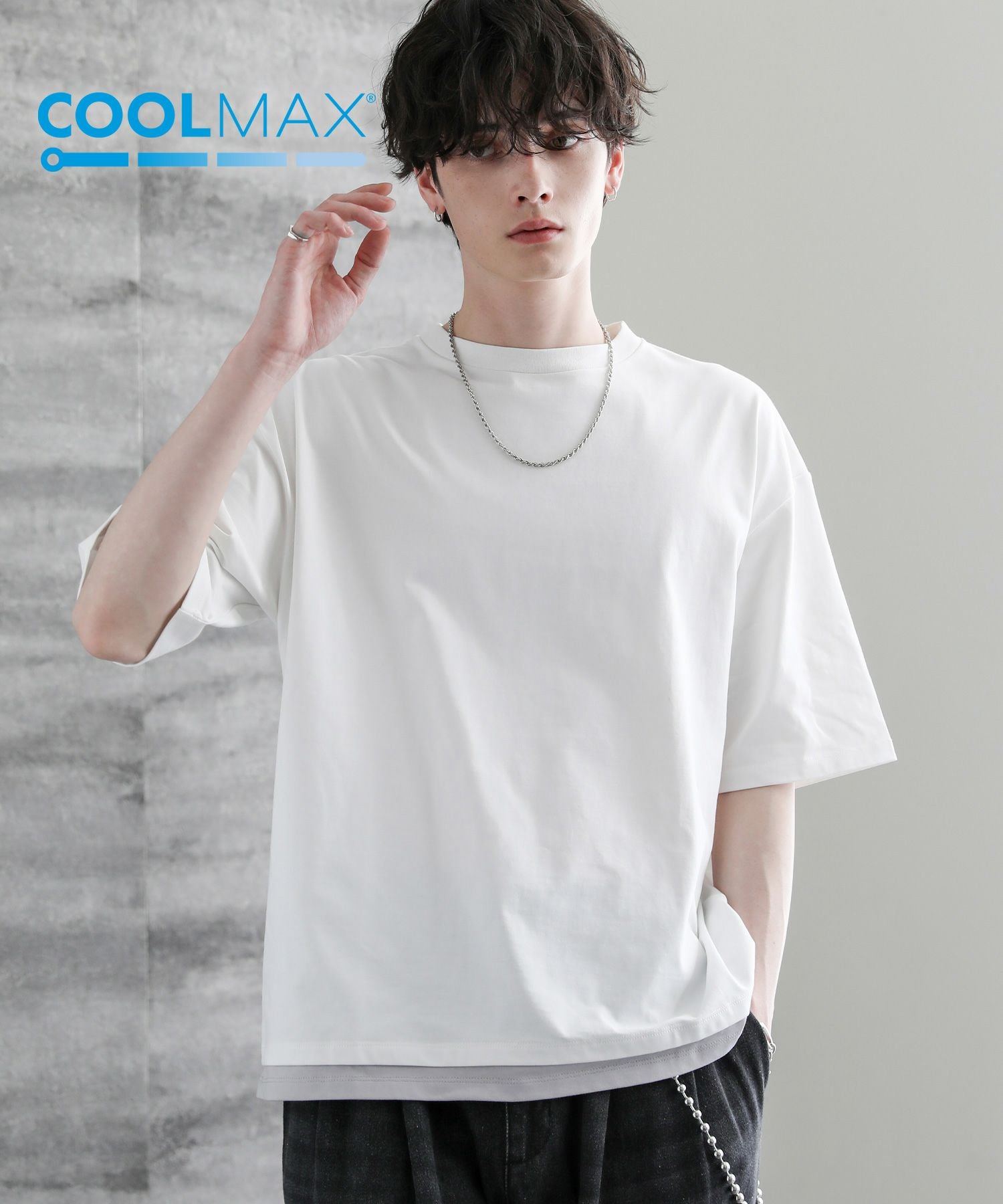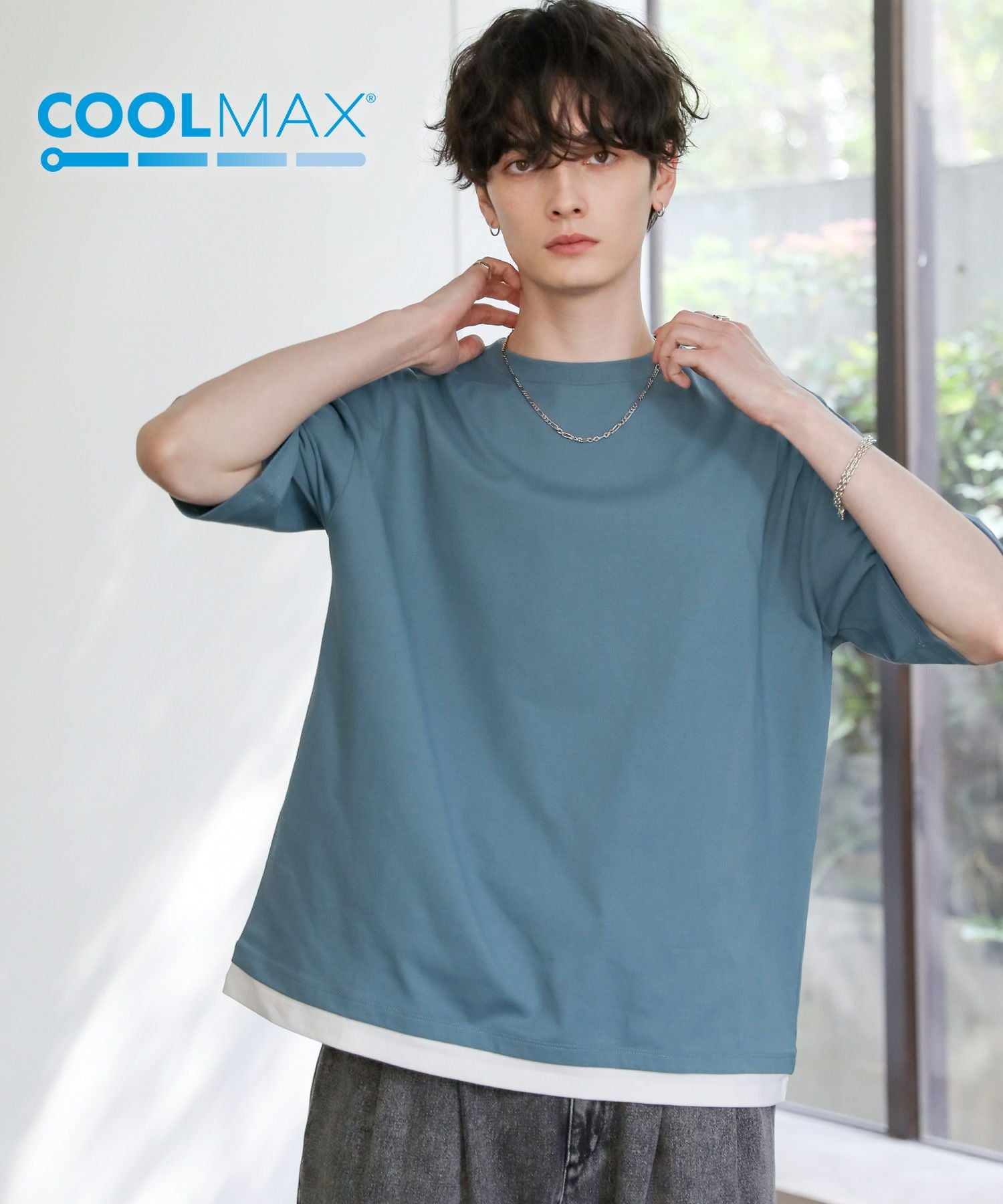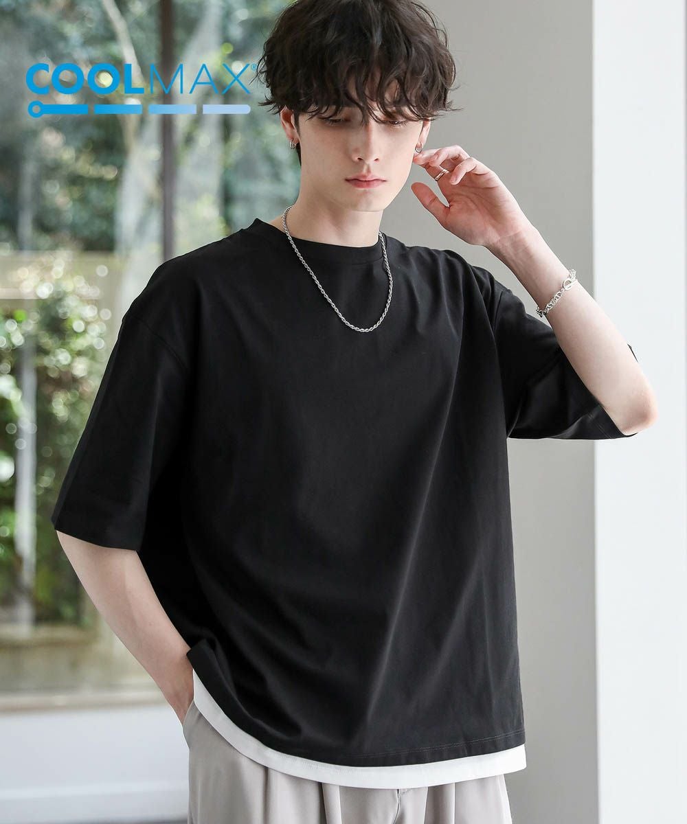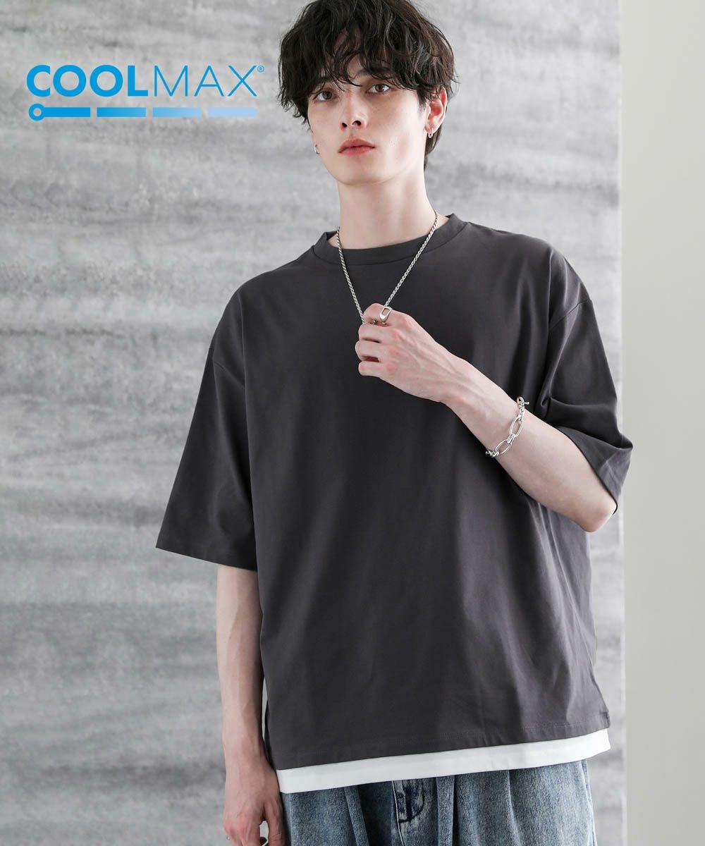 涼しい着心地を保つ機能素材、COOLMAX(R)(クールマックス)を使用したフェイクレイヤードTシャツ。COOLMAXとは、優れた吸水速乾性を持つ夏の定番素材。しっかりとした厚みを持たせつつも、暑い時期にぴったりな涼しく快適な着心地が魅力です。