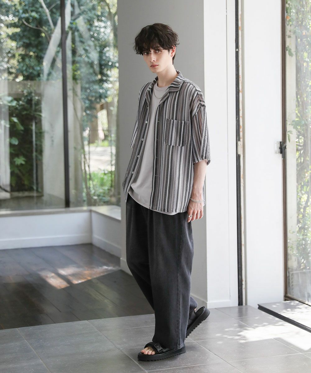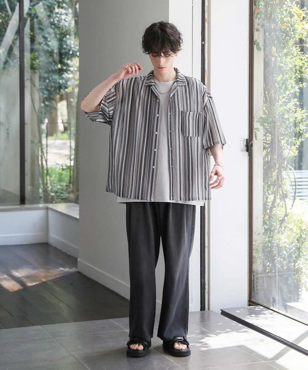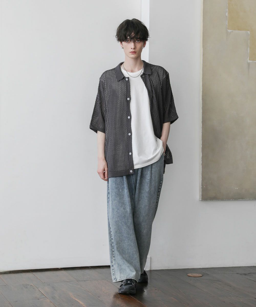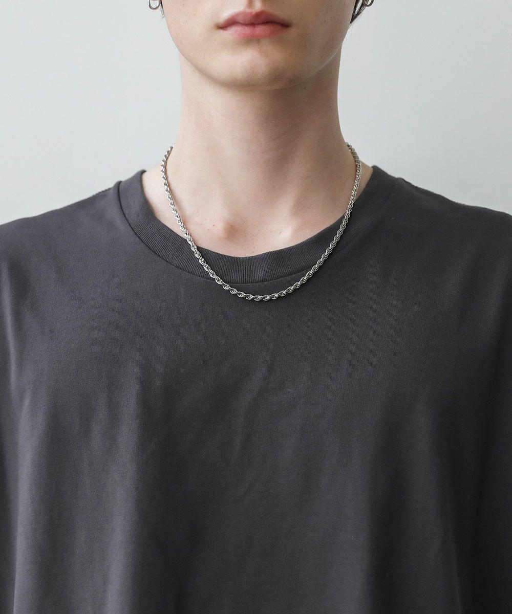 緩めのボトムと合わせた、ラフな着こなしがおすすめです。単色のシンプルなデザインなので、スラックスやデニム、ワイドパンツなど合わせるアイテムを選ばず活躍。1枚で、またシャツやカーディガンのインナーとして、様々な着こなしを楽しめます。
