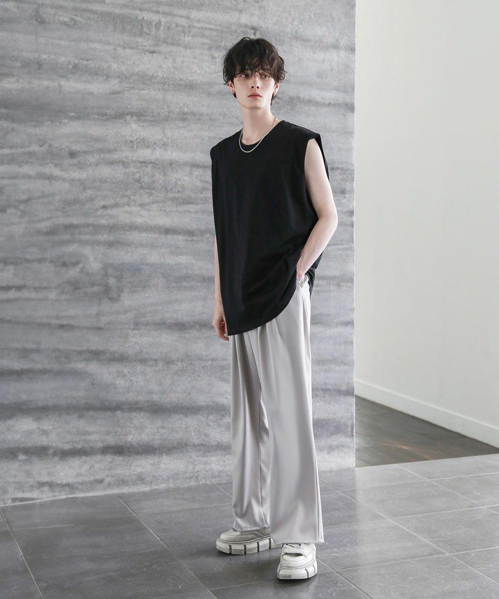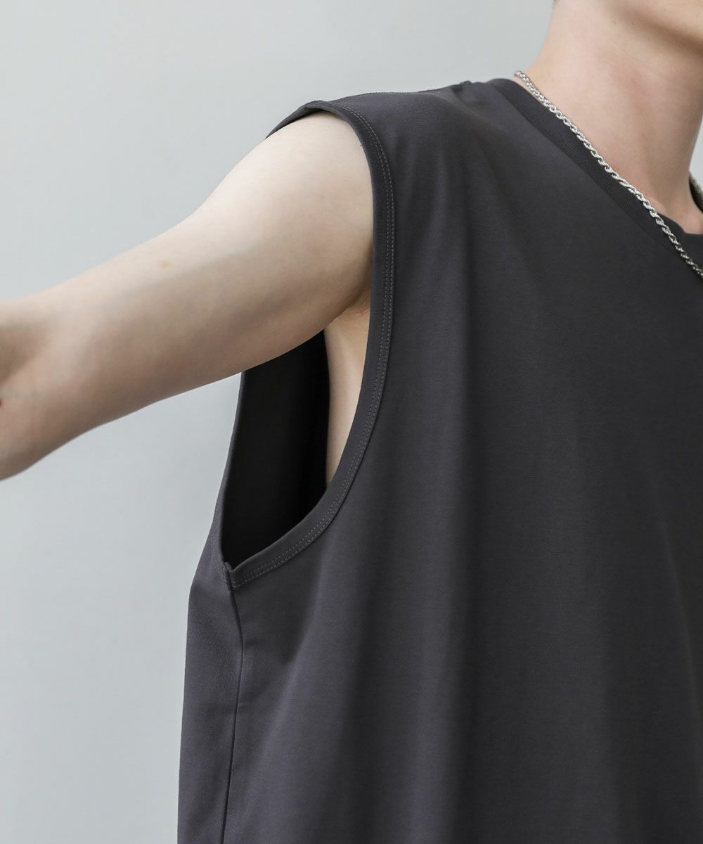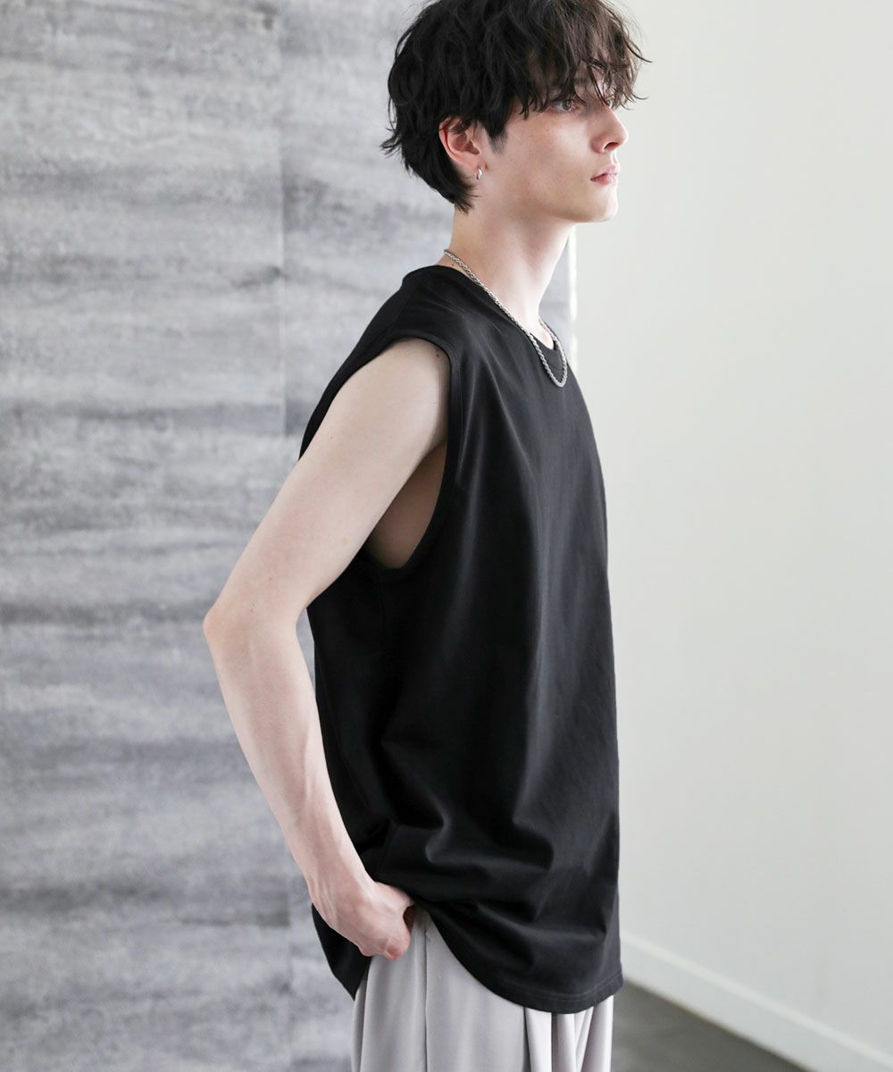 ゆとりのあるビッグシルエットに、ノースリーブデザインが半袖Tシャツとは一味違うスタイルを楽しめます。1枚での着用はもちろん、インナーとしても活躍するアイテム。どんな着こなしにも合わせやすい、ホワイト、ブラック、ライトグレー、チャコールの4色展開。デザイン性と機能性を兼ね備えた、夏に1枚は欲しいおすすめのアイテムです。