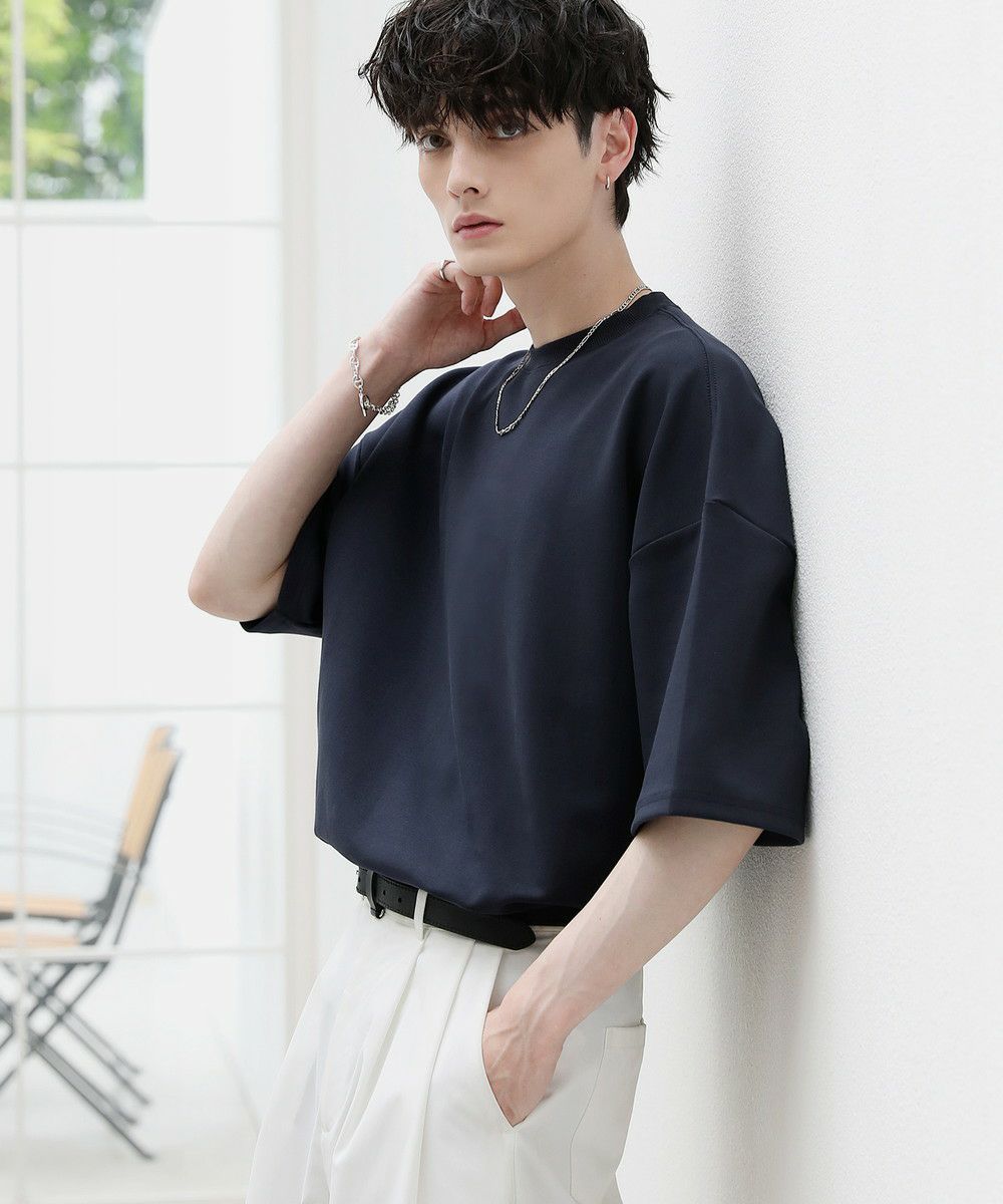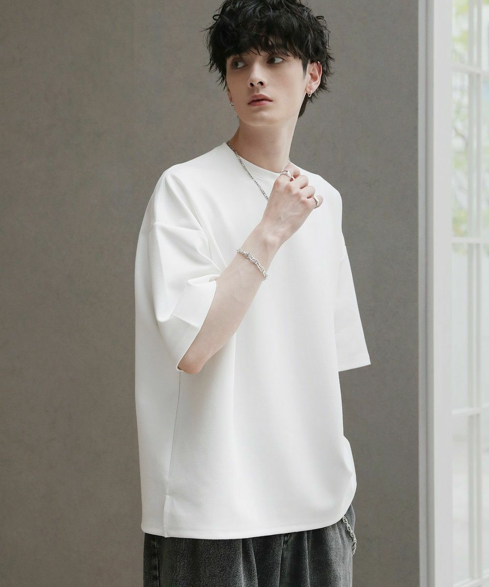 リラックス感のあるオーバーサイズの半袖ドルマンTシャツ。