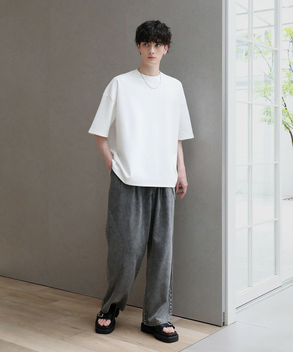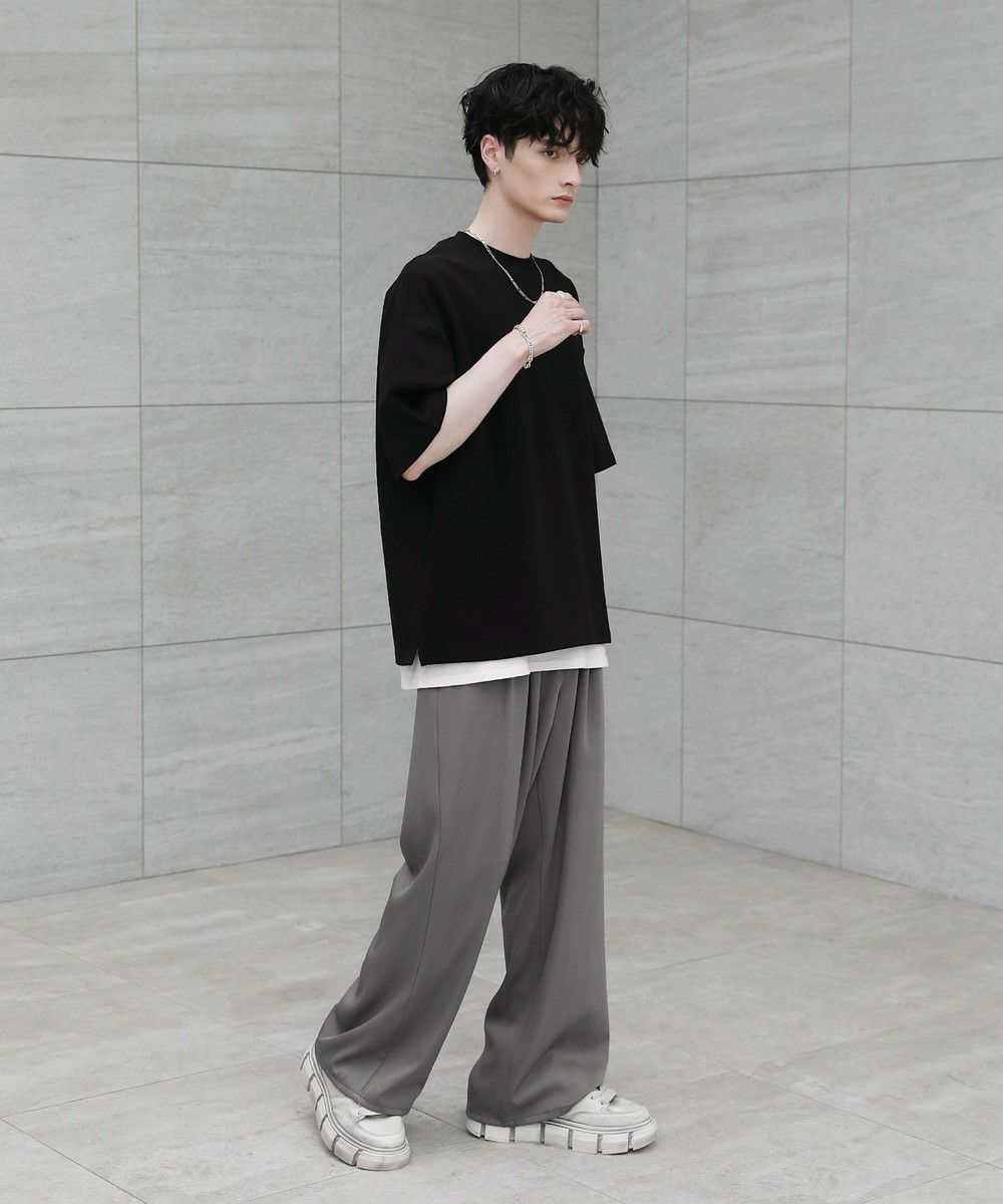 ゆったりとしたドロップショルダーが抜け感を出しつつ、着丈を長すぎない程よい長さに設定しているためレイヤードコーデもお楽しみいただけます。