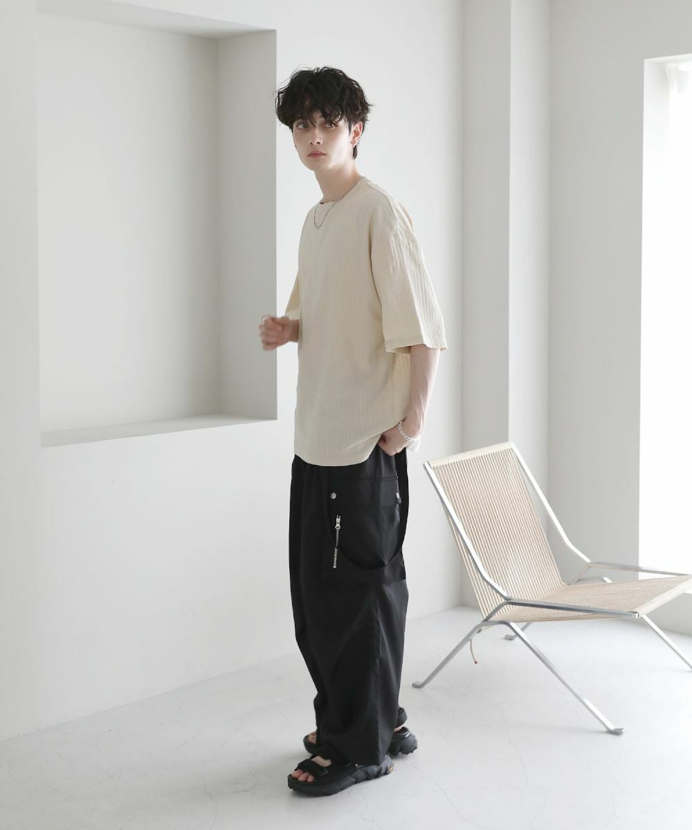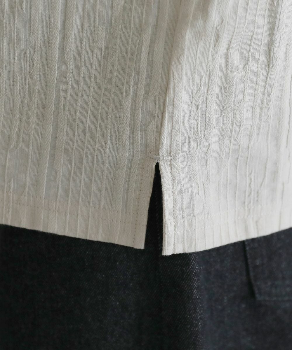 柔らかな肌触りの綿100%を使用。表面に凹凸のあるジャガードニットは立体感があり、コーディネートのアクセントに。軽やかな着心地が魅力で夏でも快適に着られる素材感です。