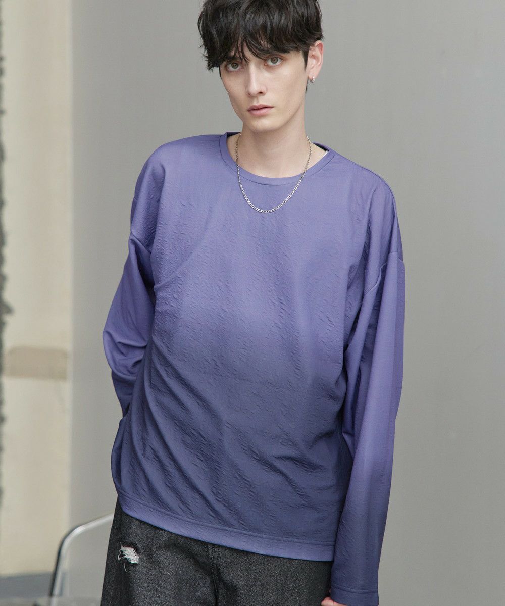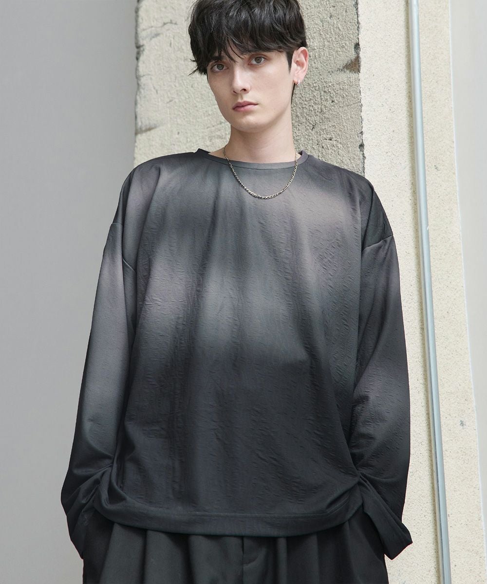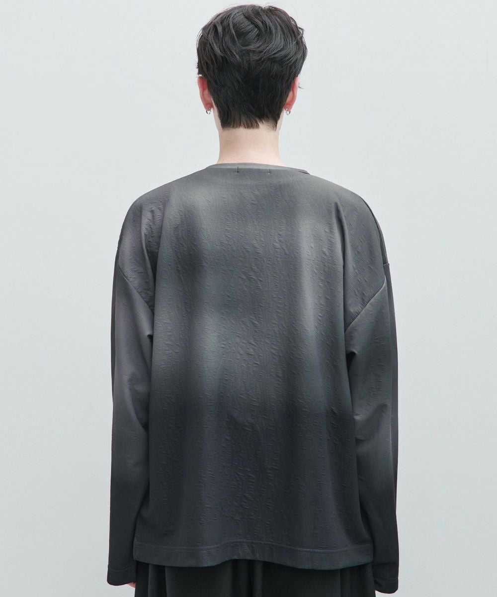 立体感のあるジャガード織りによる表情豊かなデザインが魅力の一着。オリジナルのグラデーション柄はシンプルながらも奥行きを感じさせ、スタイリングにさりげないアクセントを加えてくれます。ゆったりとした今っぽいシルエットで、リラックス感とモードな雰囲気を両立。シンプルなボトムスと合わせるだけで新鮮なコーディネートが完成します。