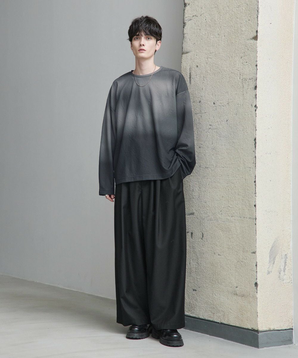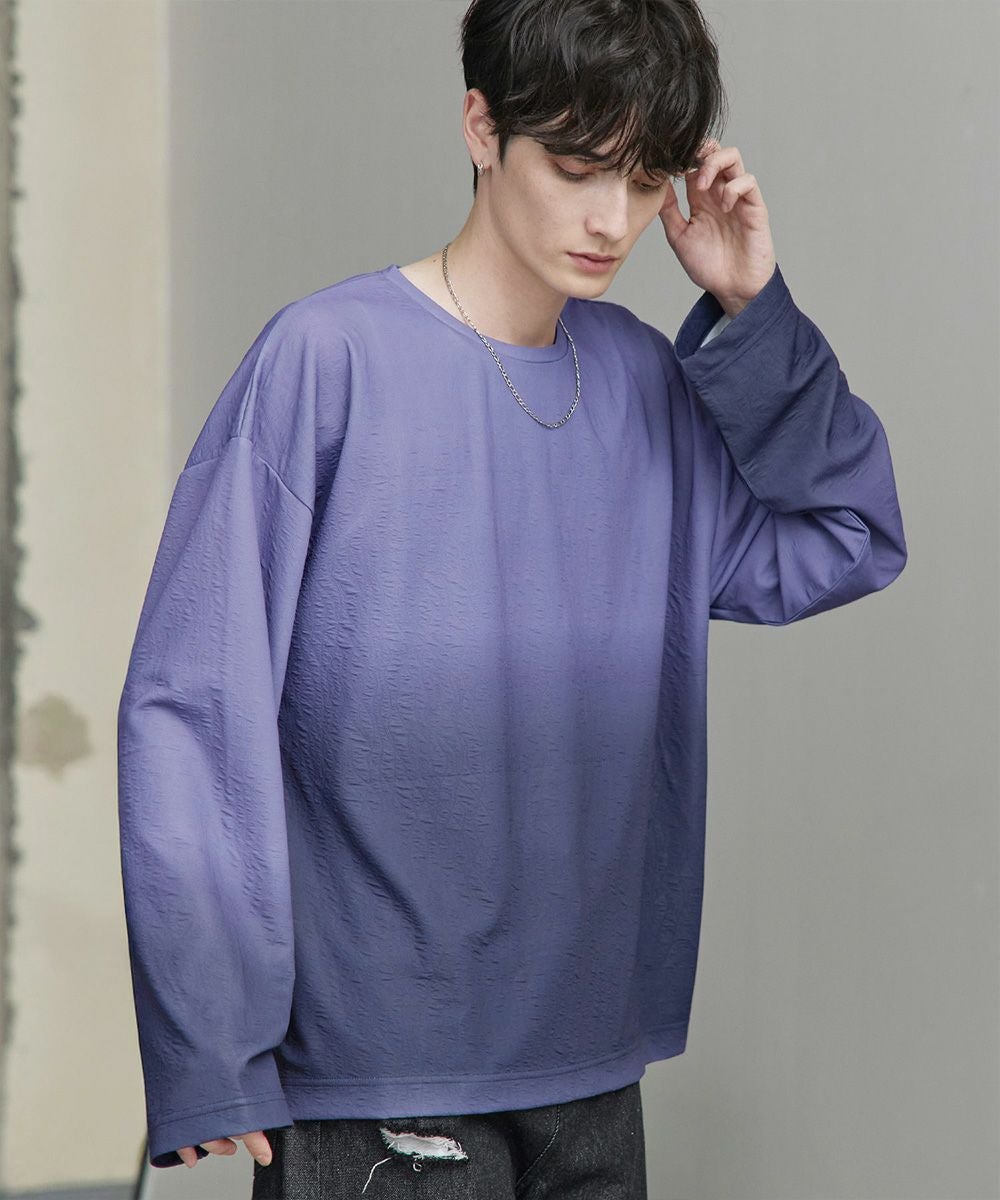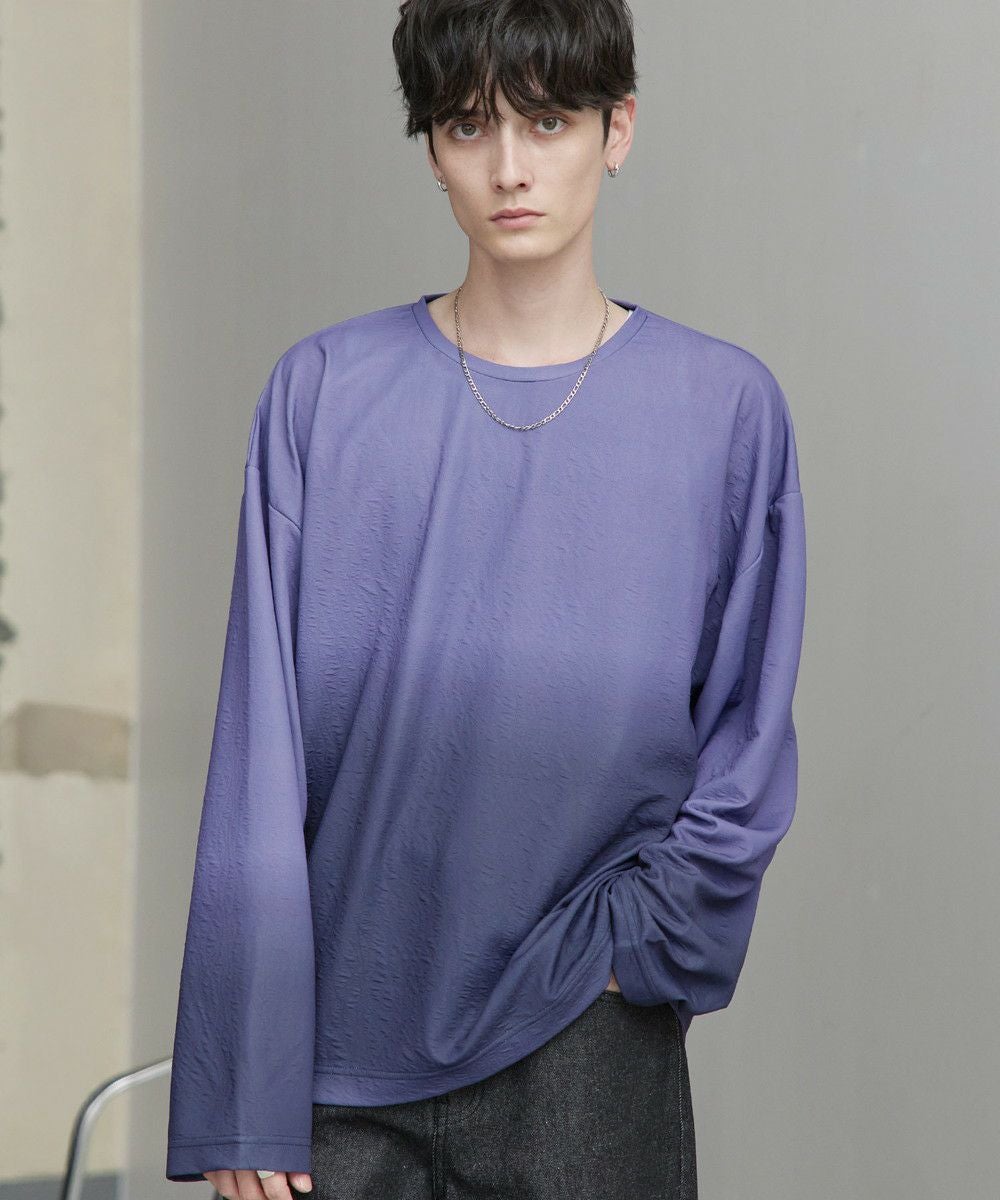 立体感のあるジャガード織りによる表情豊かなデザインが魅力の一着。オリジナルのグラデーション柄はシンプルながらも奥行きを感じさせ、スタイリングにさりげないアクセントを加えてくれます。ゆったりとした今っぽいシルエットで、リラックス感とモードな雰囲気を両立。シンプルなボトムスと合わせるだけで新鮮なコーディネートが完成します。
