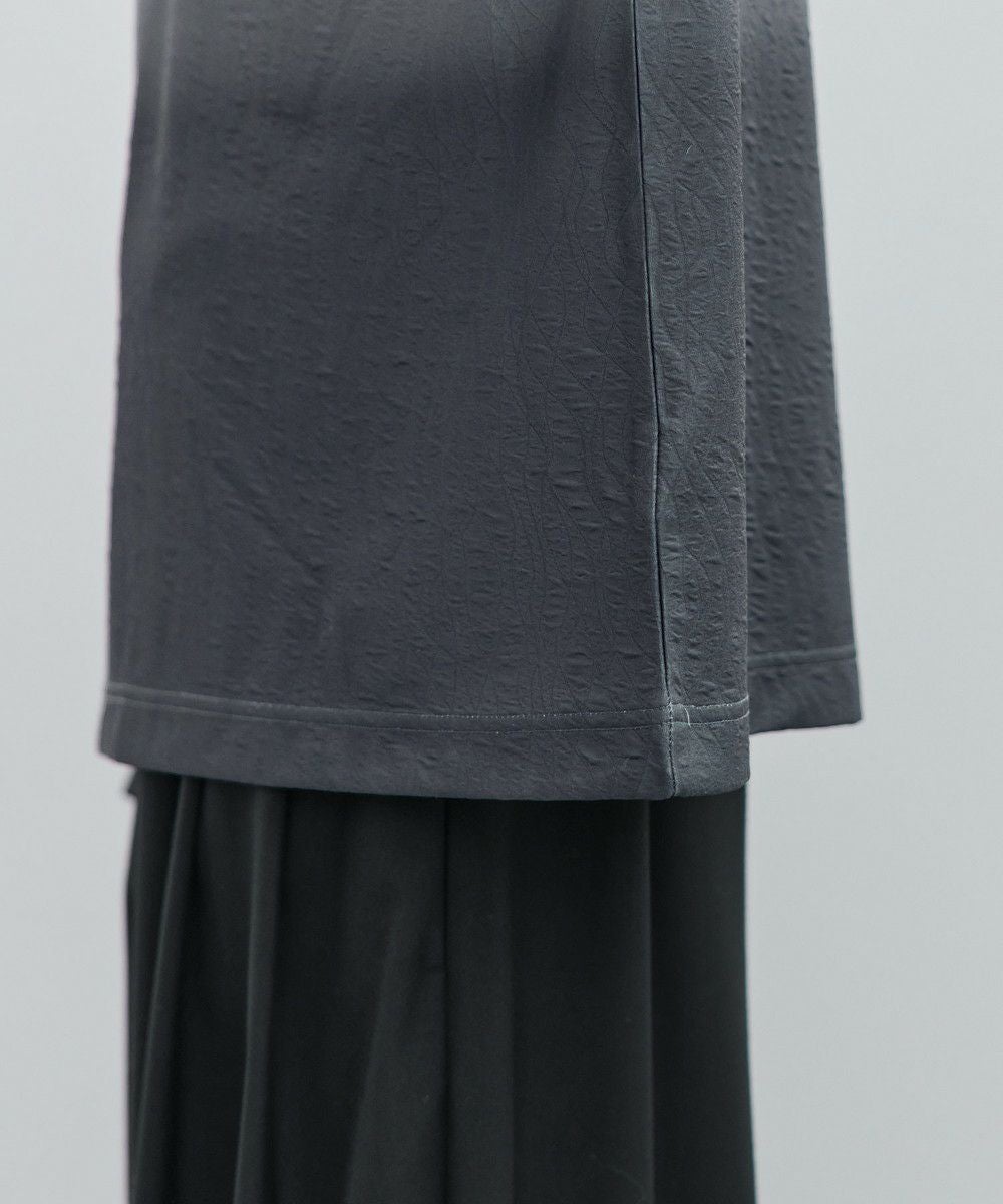 軽量でさらりとした肌触りが心地よく、ジャガード織特有の凹凸感が上品な印象を演出。ポリウレタン混で程よい伸縮性があり、動きやすさと快適なフィット感を両立します。