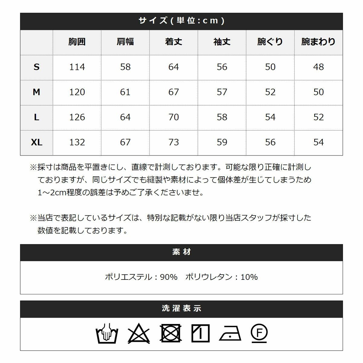 ポリエステル90%, ポリウレタン10%