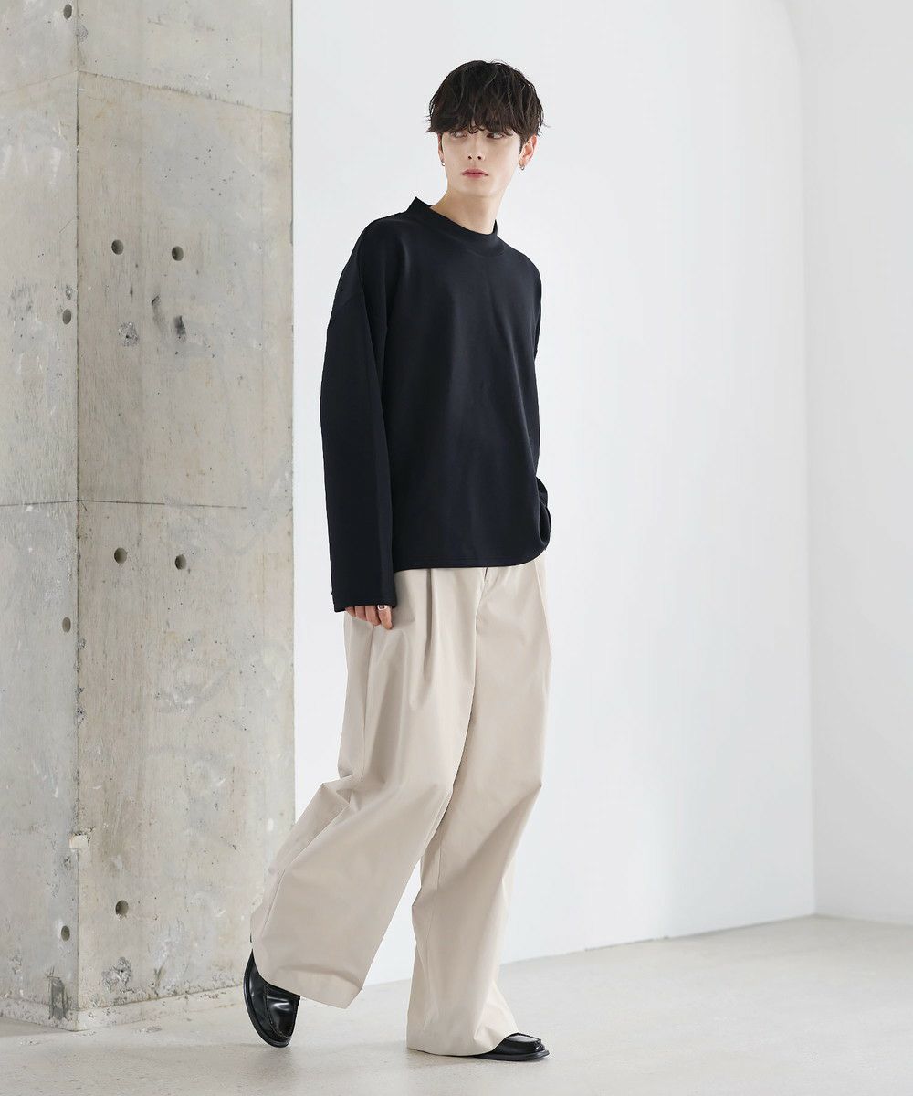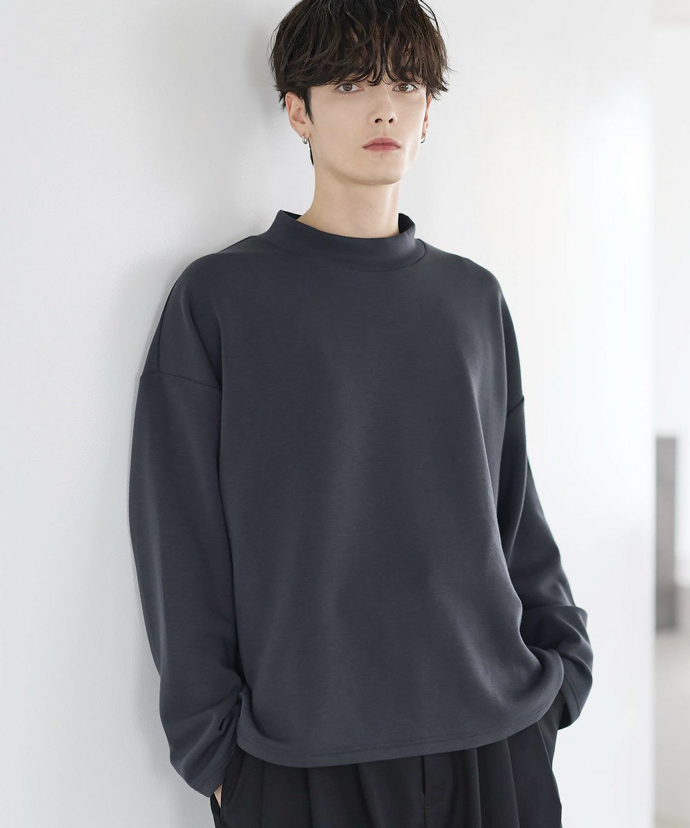防シワ性と抗ピリング機能を備えた、ポンチ素材のモックネックトップスです。程よく立ち上がるネックデザインが上品な印象を与え、シンプルながら洗練された雰囲気を演出します。ゆとりを持たせたシルエットにより、リラックス感がありながらもだらしなく見えないバランスに設計。一枚での着用はもちろん、ジャケットやアウターのインナーとしても活躍します。日常使いしやすい機能性と都会的な佇まいを兼ね備えた一着です。