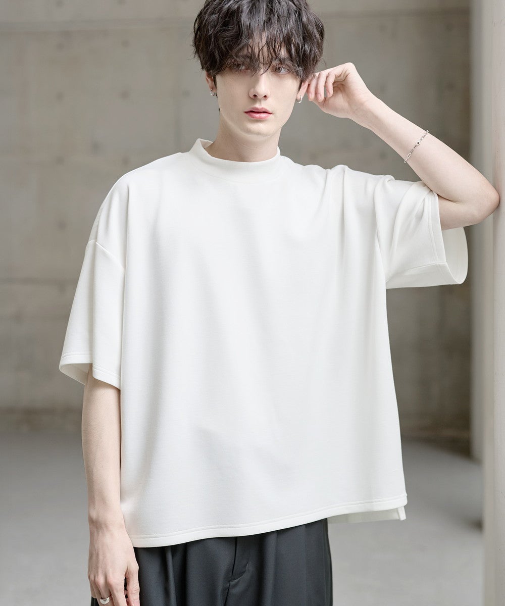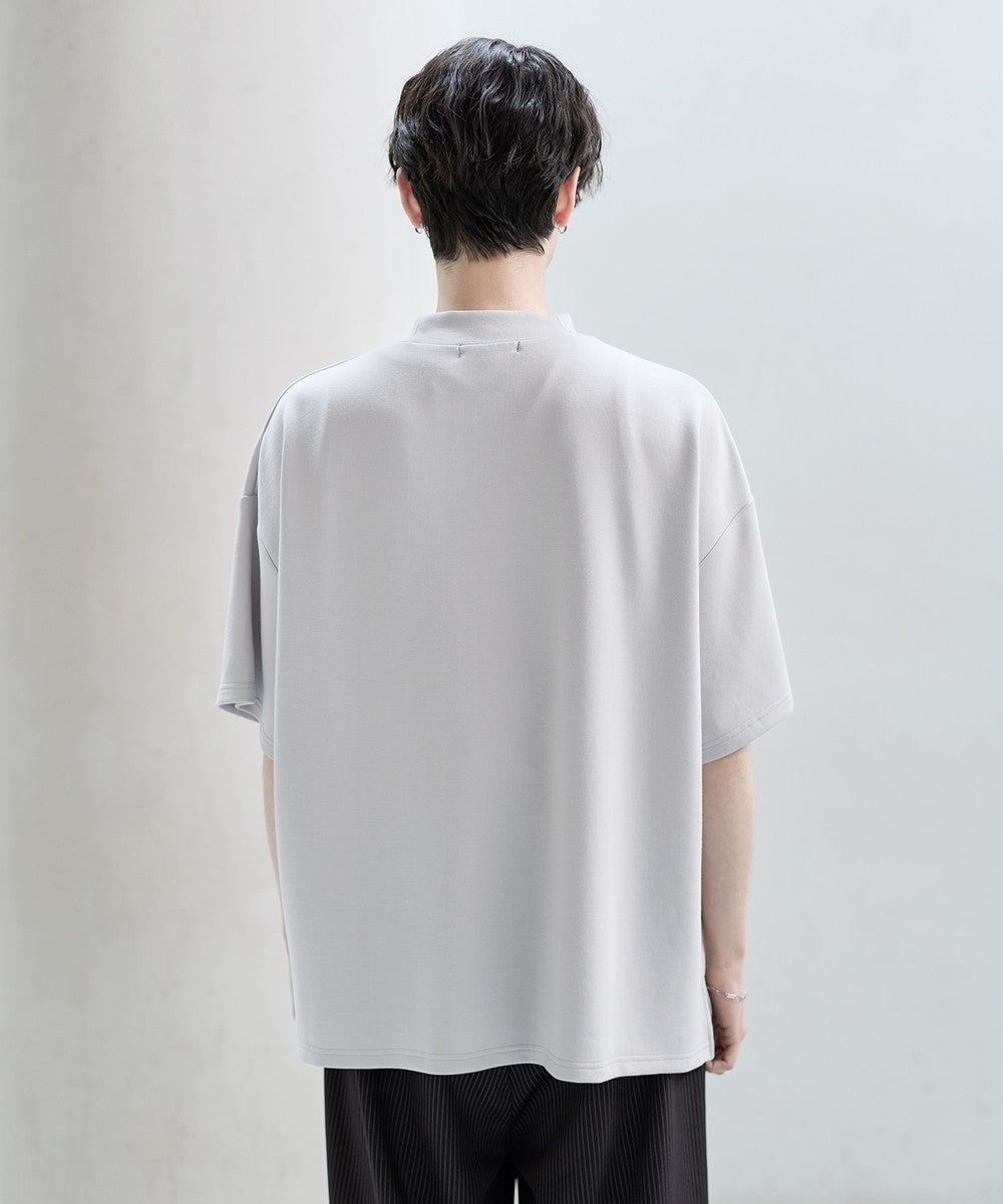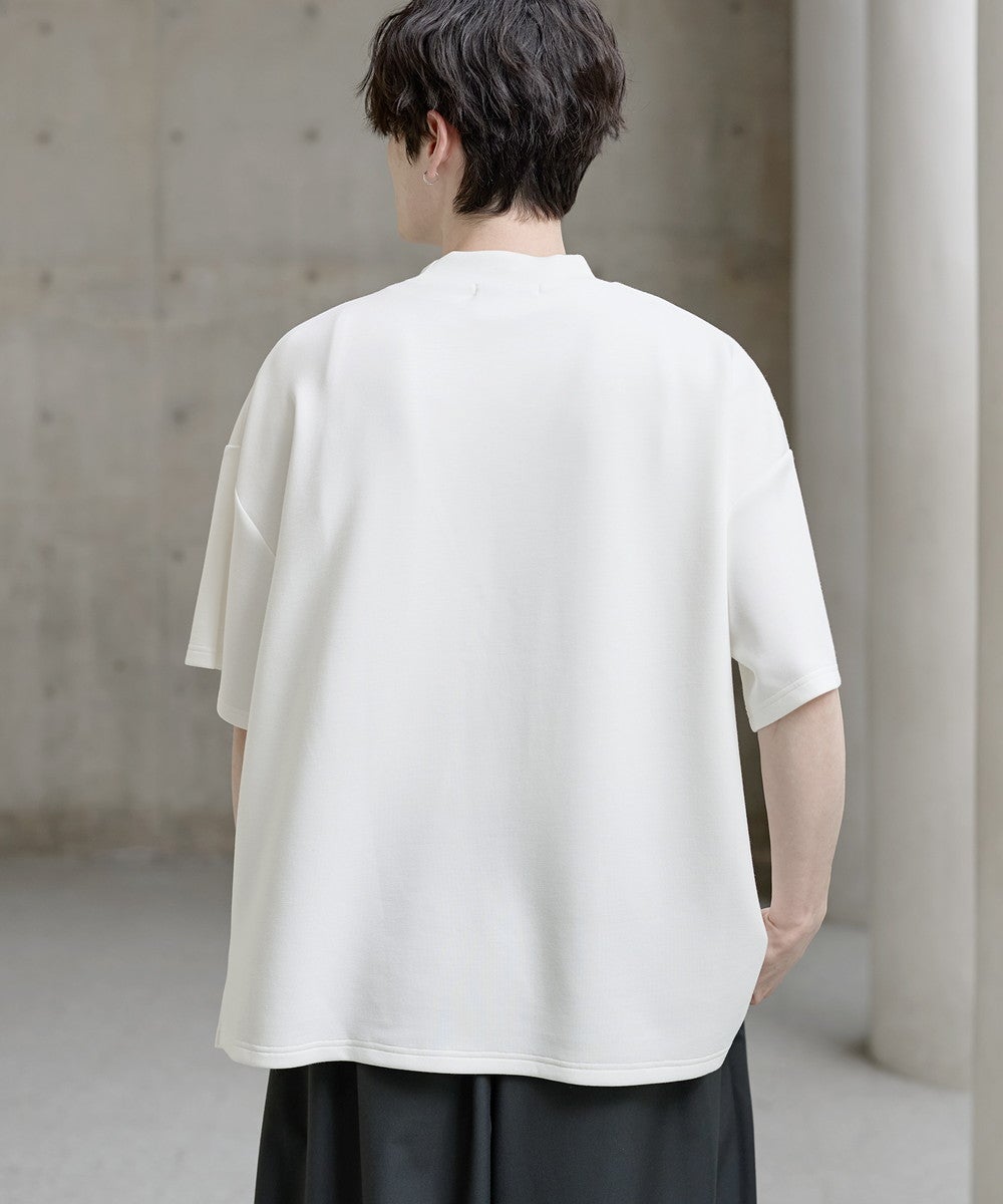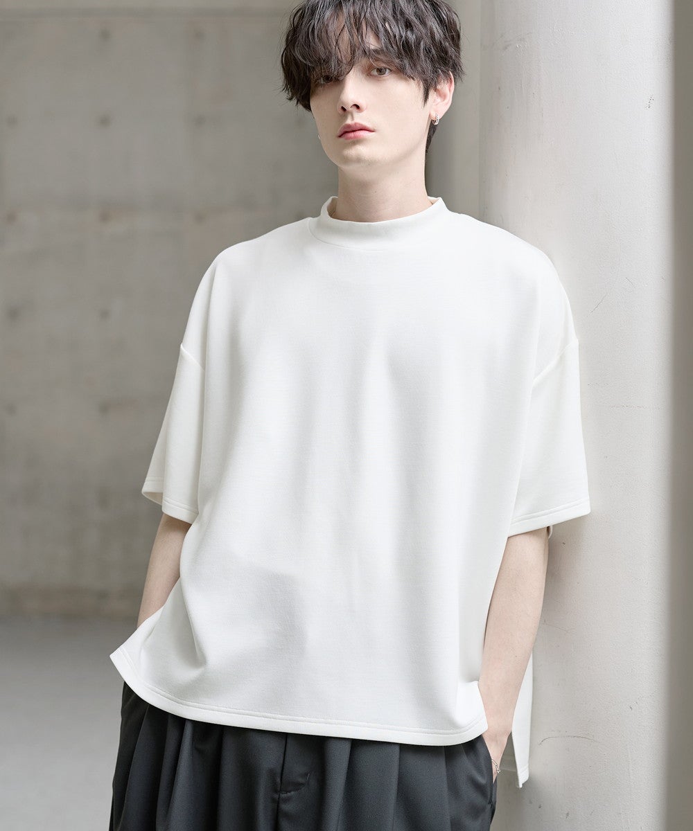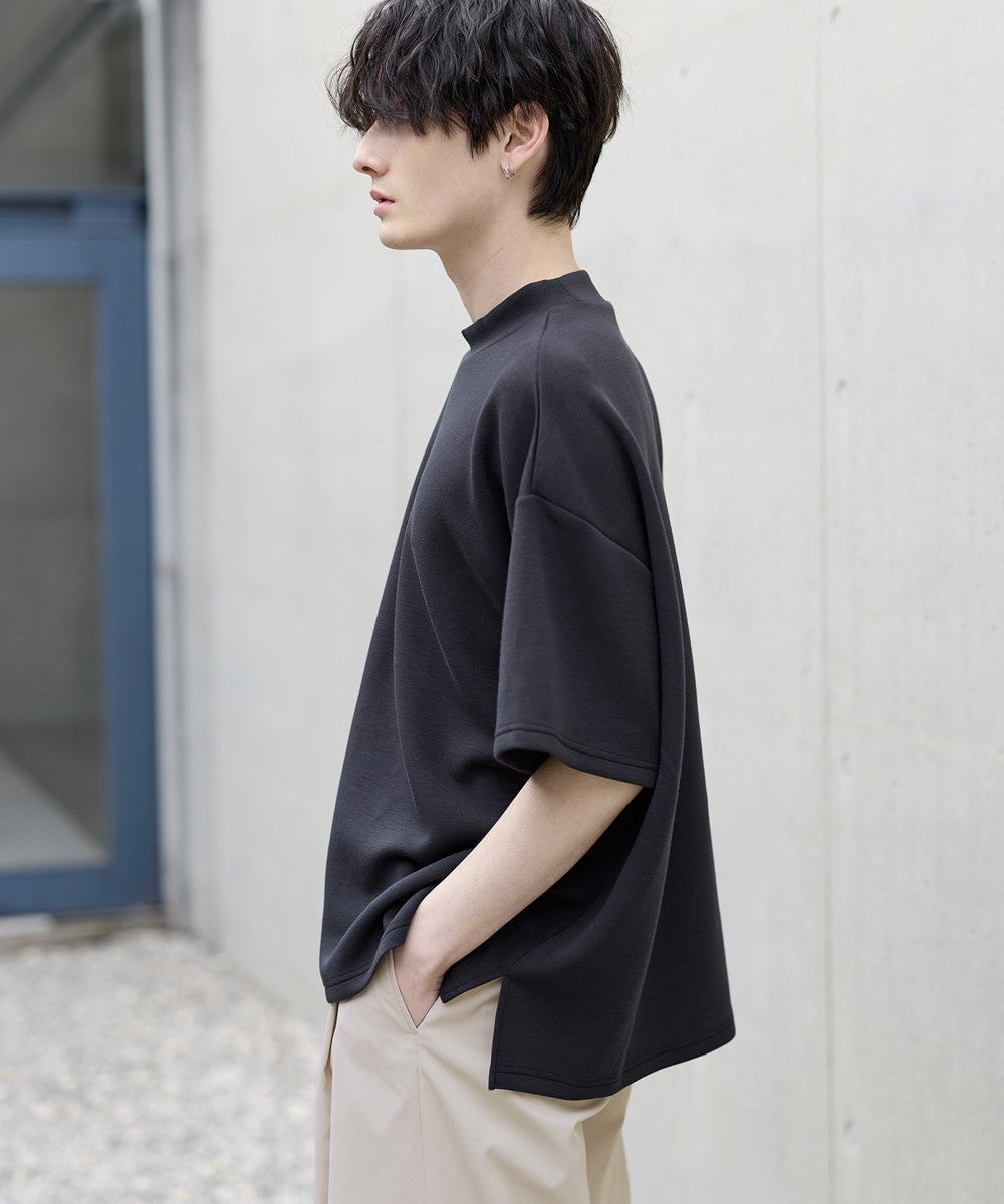 防シワ性と抗ピリング機能を備えた、ポンチ素材のモックネックカットソーです。程よく立ち上がるネックデザインが上品な印象を与え、シンプルながら洗練された雰囲気を演出。ゆとりを持たせたシルエットにより、リラックス感がありながらもだらしなく見えないバランスに設計しました。さらに前後差のある着丈、サイドスリットがこなれ感をプラスしてくれます。日常使いしやすい機能性と都会的な佇まいを兼ね備えた一着です。