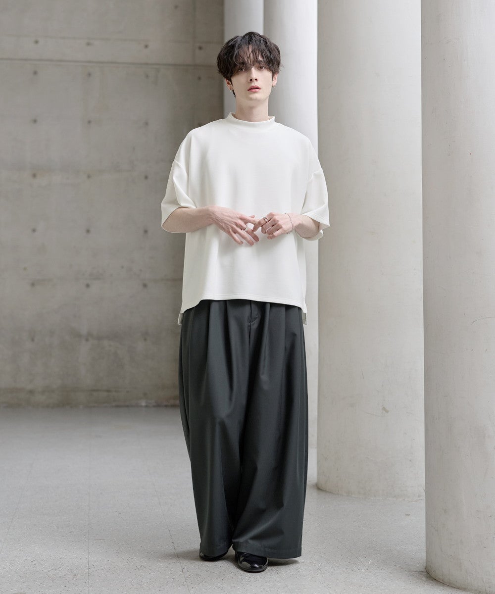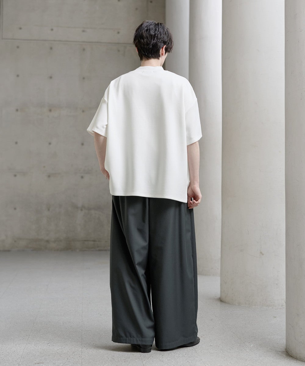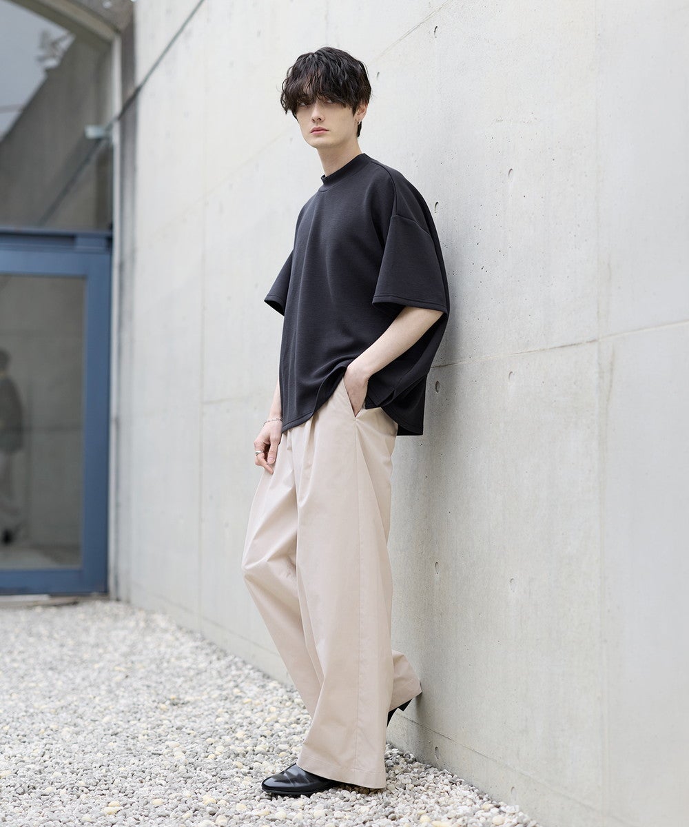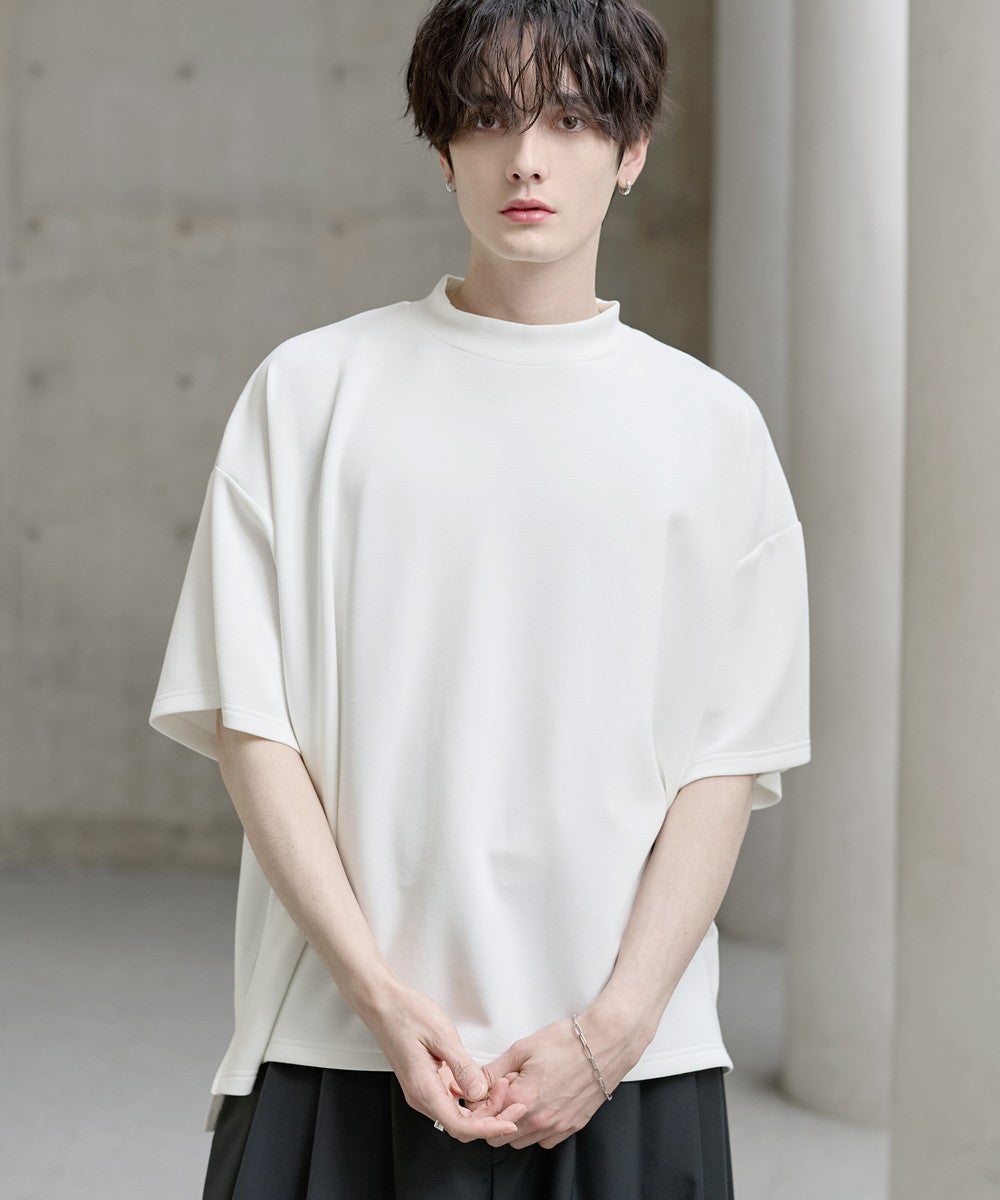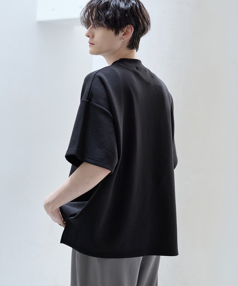 防シワ性と抗ピリング機能を備えた、ポンチ素材のモックネックカットソーです。程よく立ち上がるネックデザインが上品な印象を与え、シンプルながら洗練された雰囲気を演出。ゆとりを持たせたシルエットにより、リラックス感がありながらもだらしなく見えないバランスに設計しました。さらに前後差のある着丈、サイドスリットがこなれ感をプラスしてくれます。日常使いしやすい機能性と都会的な佇まいを兼ね備えた一着です。