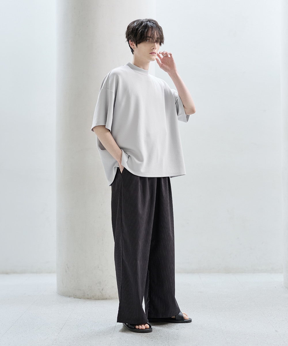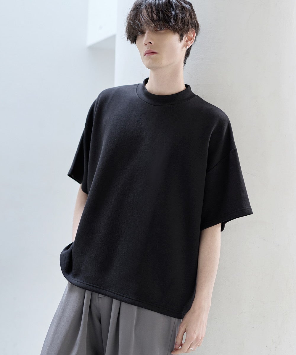防シワ/抗ピリング ポンチモックネック半袖カットソー