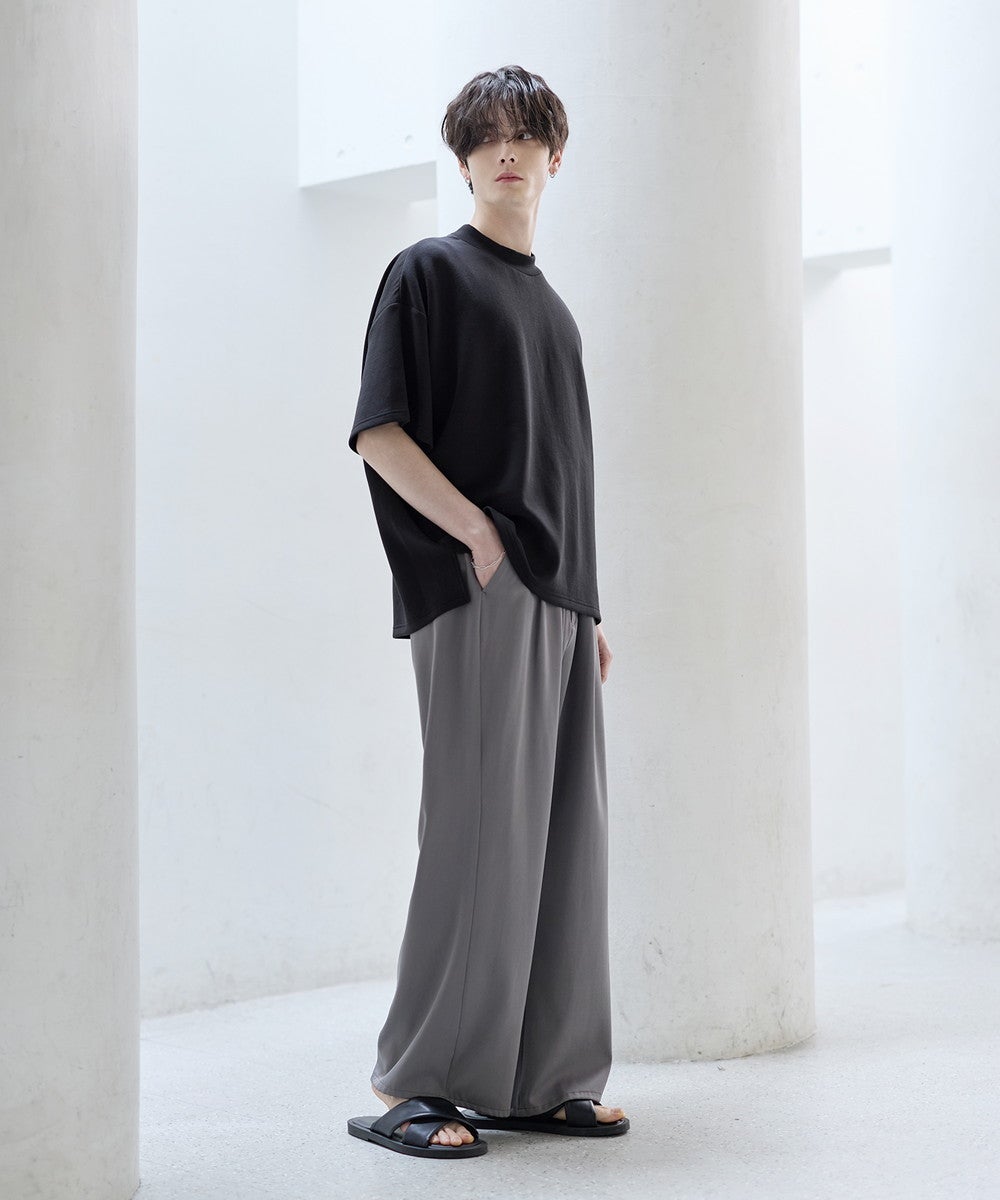 スラックスと合わせれば、ミニマルで洗練されたスタイルに。ワイドパンツと組み合わせることで、抜け感のある着こなしが完成します。キレイめにもカジュアルにも着回しの効く、デイリーに活躍する万能アイテムです。