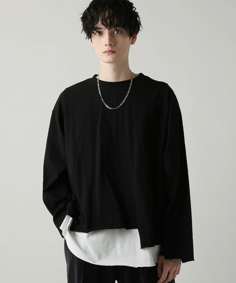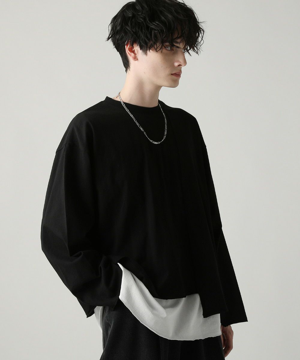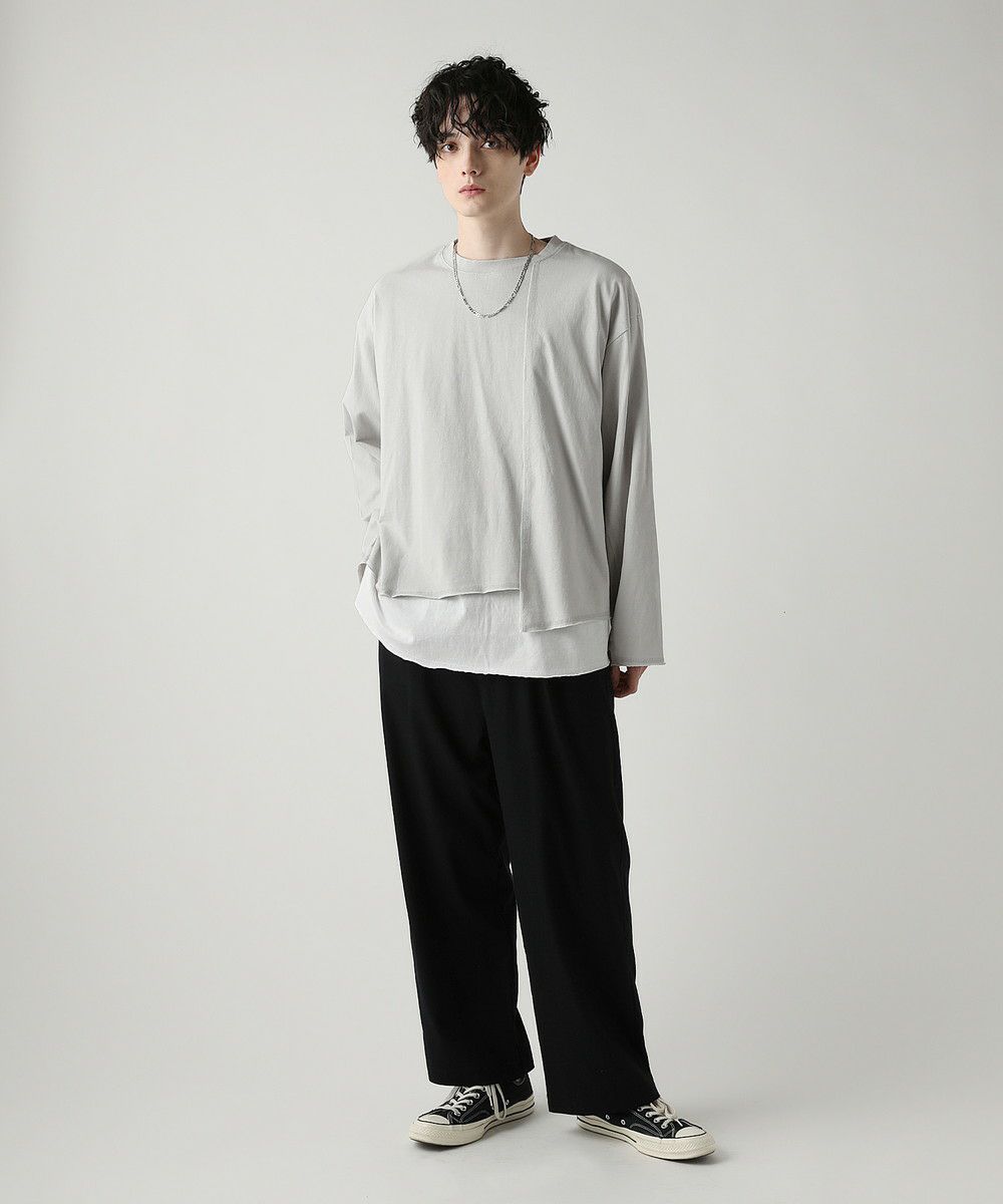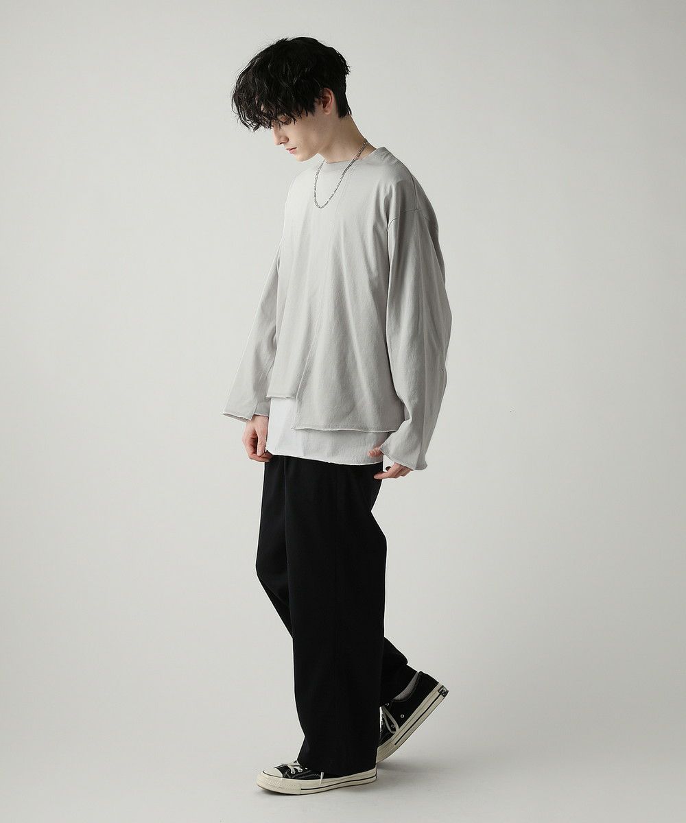 ロンTとタンクトップの2枚セット。重ね着をしたレイヤードコーデはもちろん、タンクトップ、ロンTでも着まわせるアイテムです。ロンTの裾と袖部分は他にはない変形デザインで個性的な印象。タンクトップは裾をサイドスリットにするなど細部にまでこだわりました。トレンドのビッグシルエットに仕上げることによりこなれ感を生み出します。