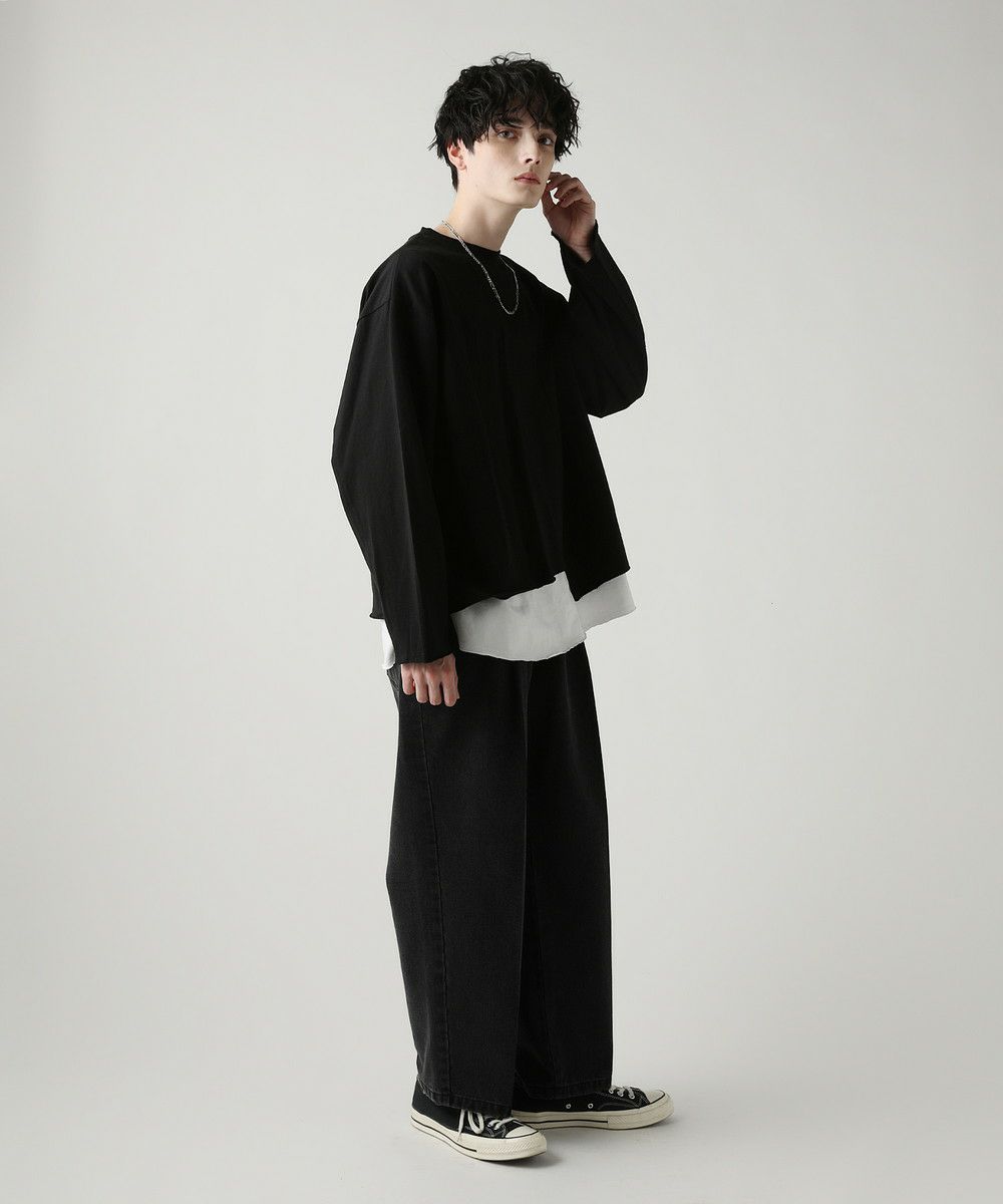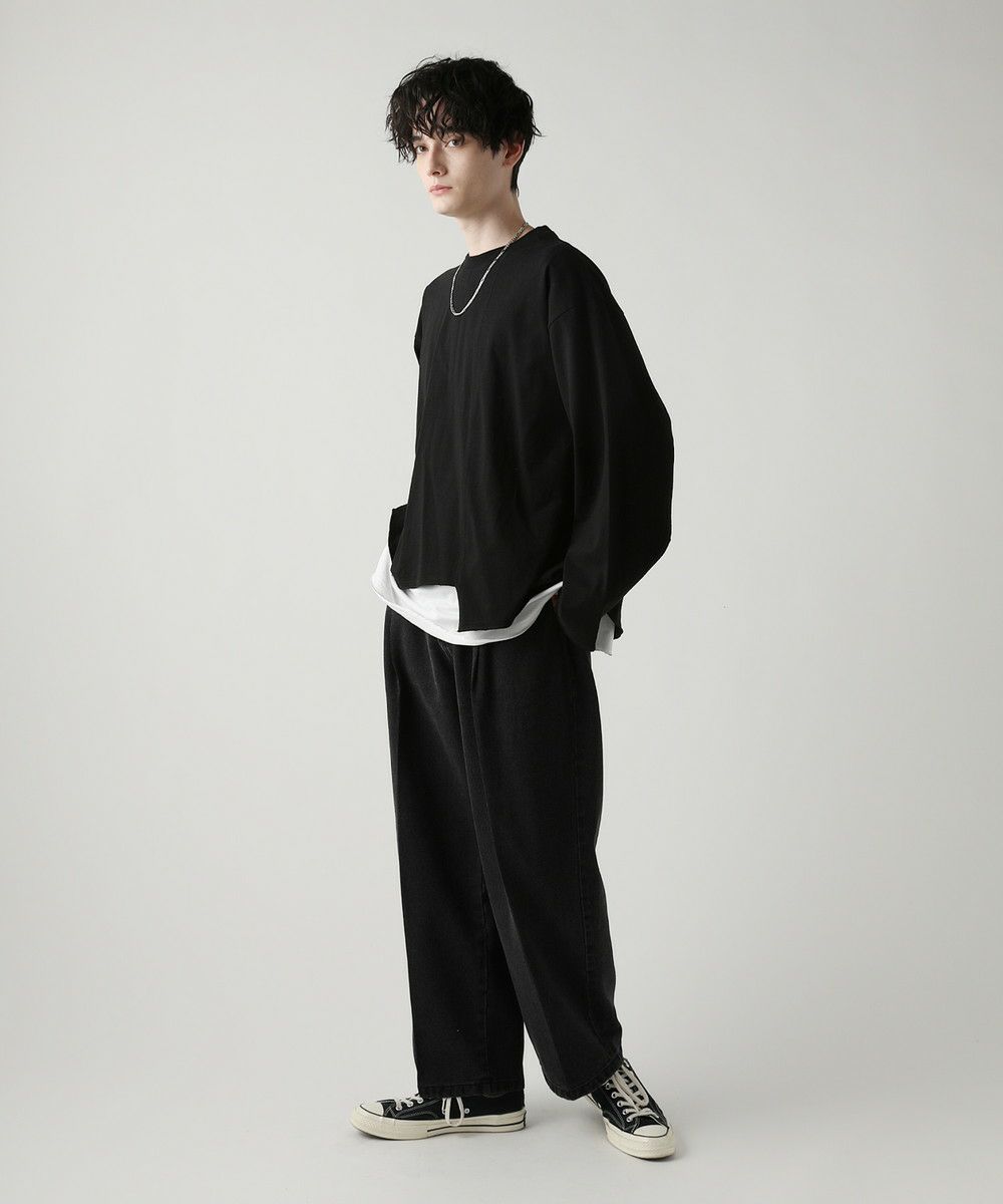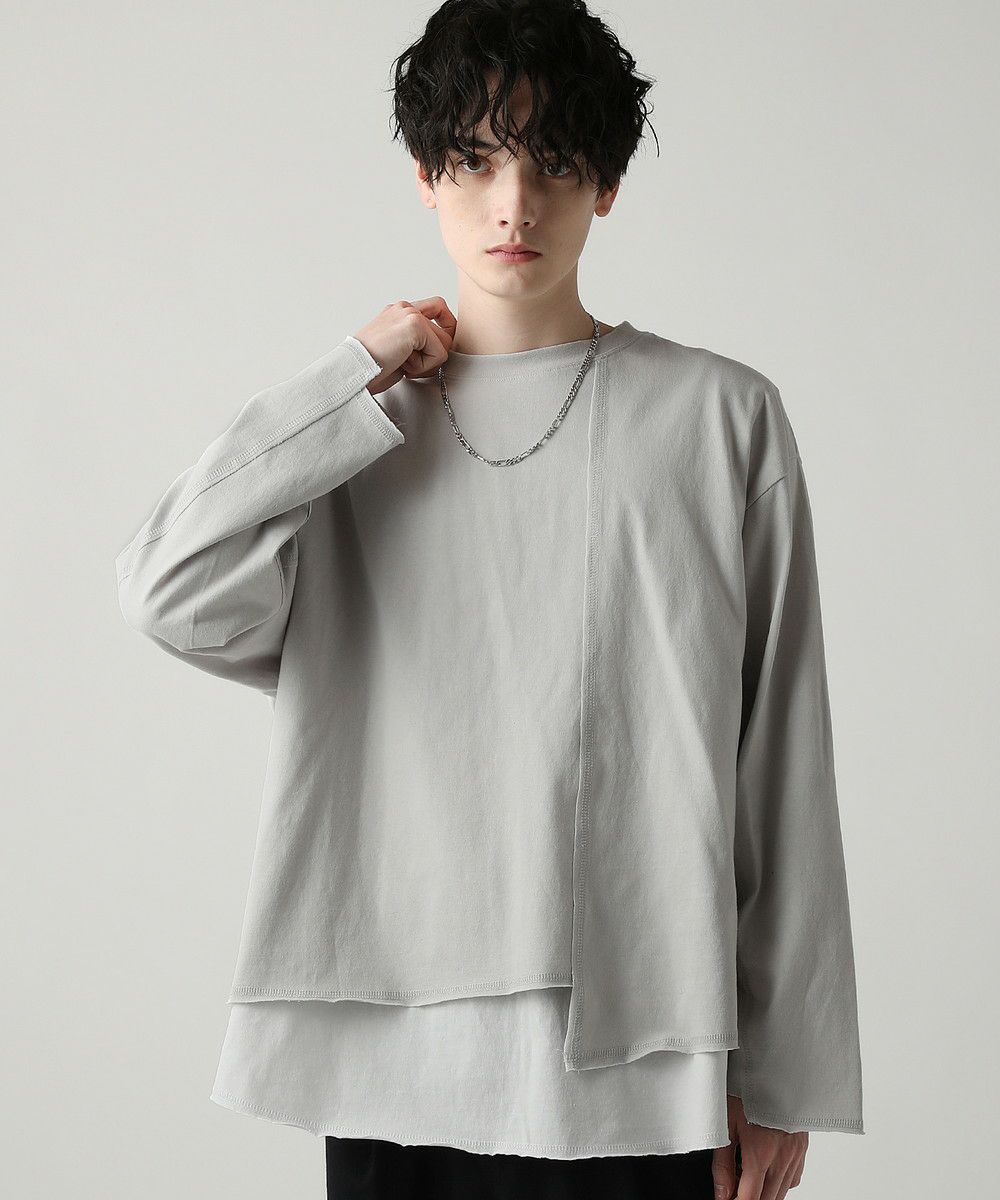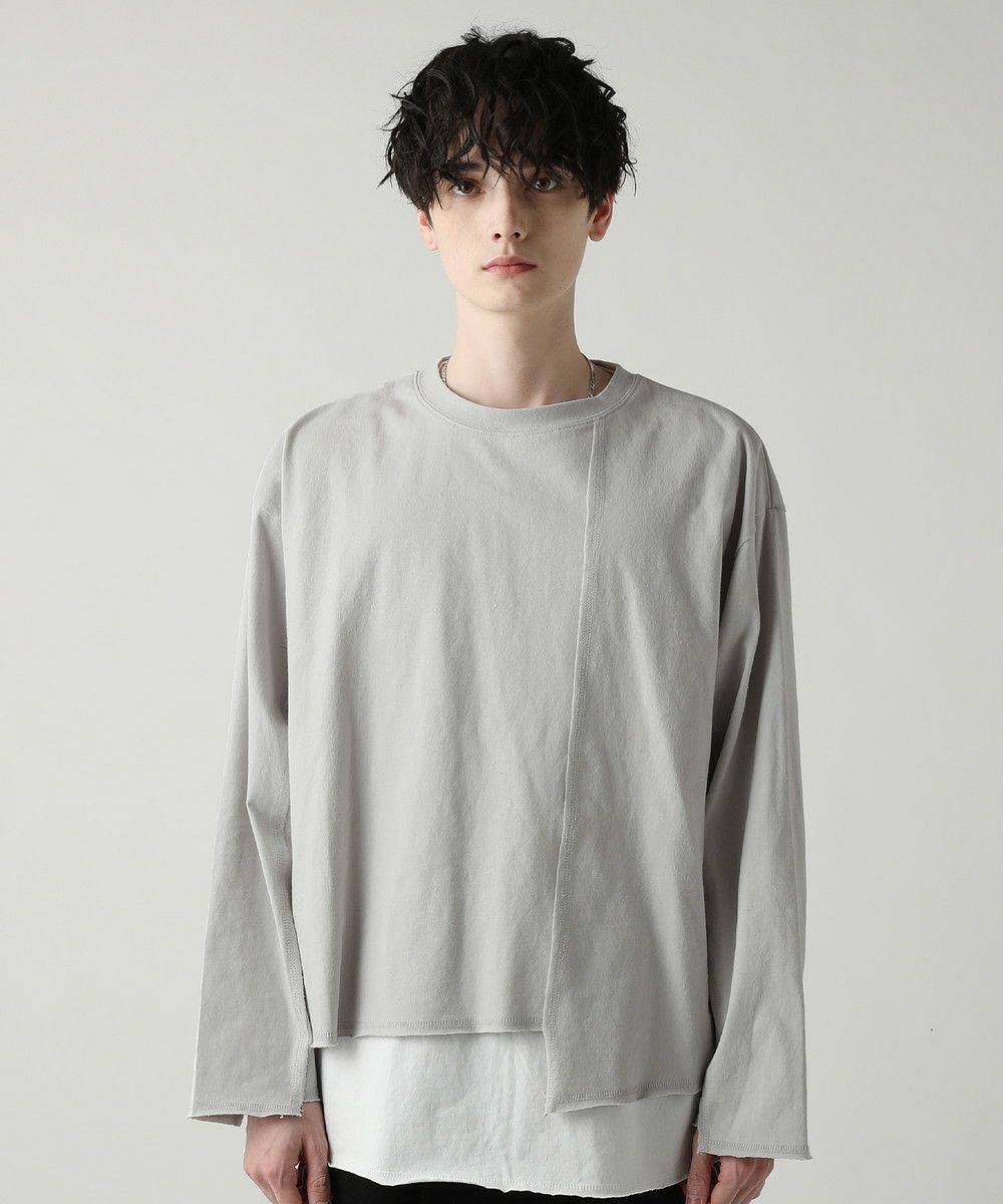 ロンTとタンクトップの2枚セット。重ね着をしたレイヤードコーデはもちろん、タンクトップ、ロンTでも着まわせるアイテムです。ロンTの裾と袖部分は他にはない変形デザインで個性的な印象。タンクトップは裾をサイドスリットにするなど細部にまでこだわりました。トレンドのビッグシルエットに仕上げることによりこなれ感を生み出します。