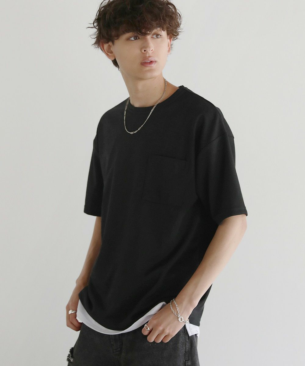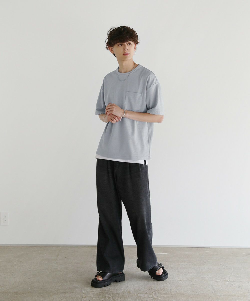 Buyer's Select/楊柳ジャガード 半袖胸ポケット クルーネックTシャツ