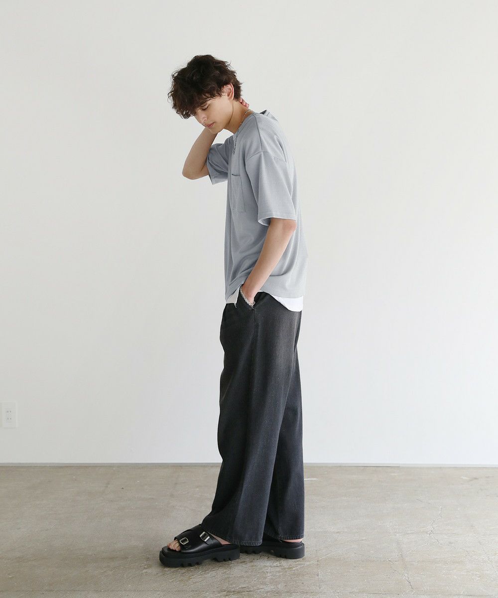 通気性が良く軽やかな着心地で、暑い夏でも快適に着用できる楊柳ジャガード半袖Tシャツ。凹凸感のある織り方で、柄を立体的に出すことでプレーンなTシャツとは一味違うコーデが決まります。程よくゆったりとしたサイズ感でさらっと着こなせ、旬のスタイルが決まる一着。前身頃の胸ポケットもさり気ないアクセントに。カラーはベーシックなブラック、見た目にも涼し気なアイスグレー、着こなしのアクセントになるネイビーの3色展開。一枚あると夏の着こなしに新鮮さをプラスできる汎用性の高いアイテムです。