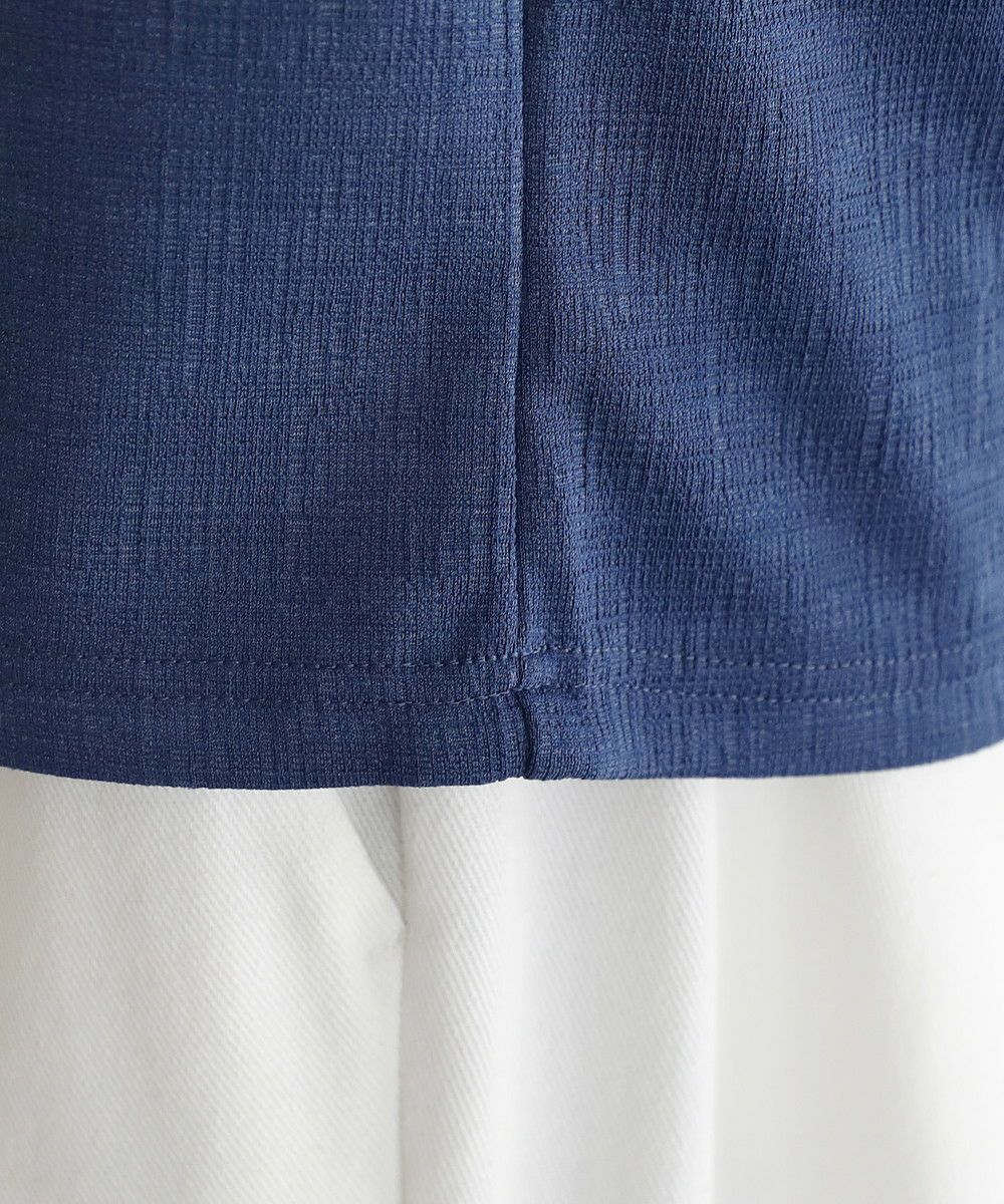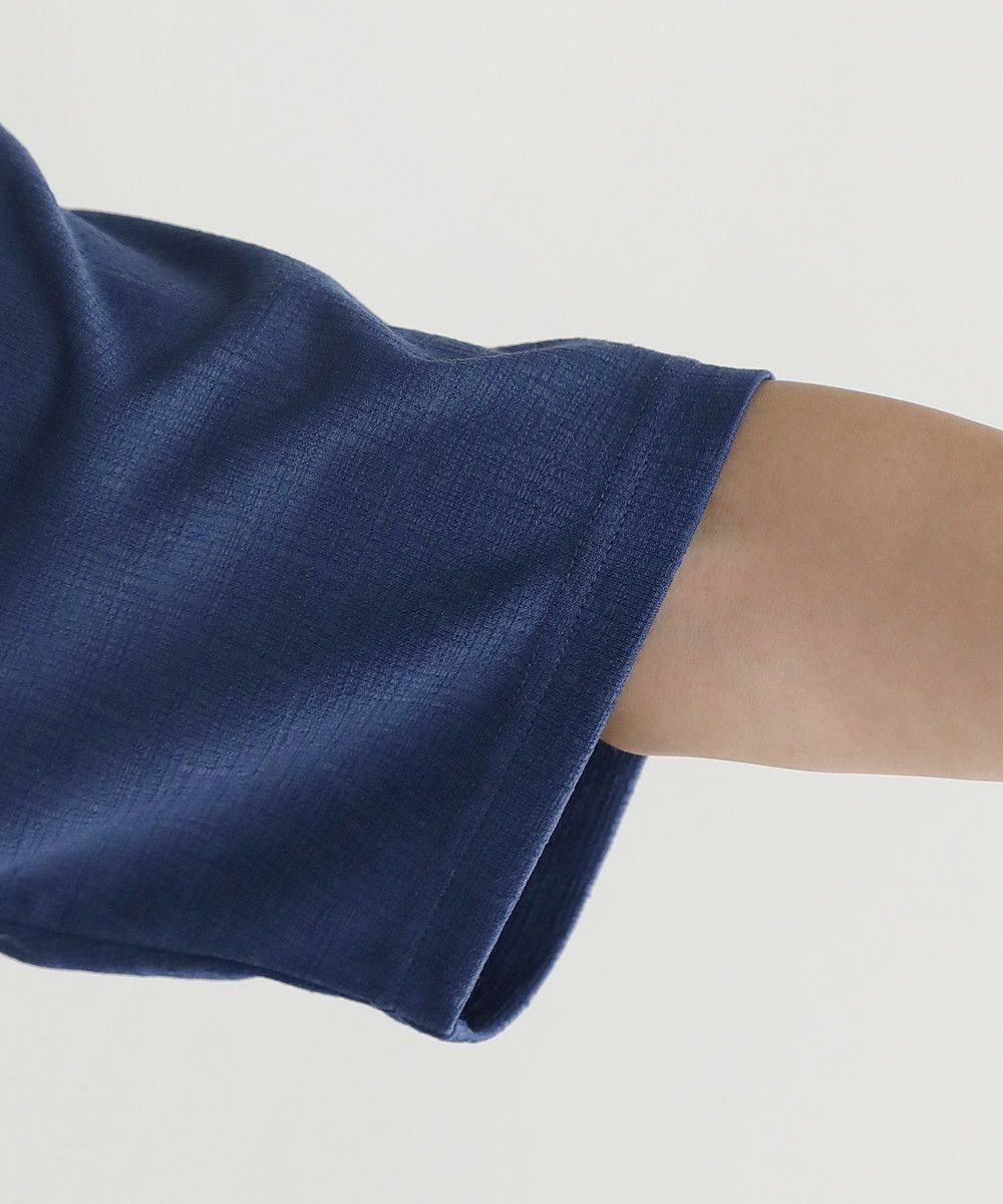 ポリエステル×ポリウレタンの楊柳ジャガード素材を使用しております。通気性が良く、凹凸のある素材が肌との密着を軽減し、べたつきにくい着用感。またポリウレタン混のため伸縮性に優れ、スムーズに着脱できます。程よい光沢感もあるのでカジュアル過ぎず、ほどよく大人っぽく着こなせます。
