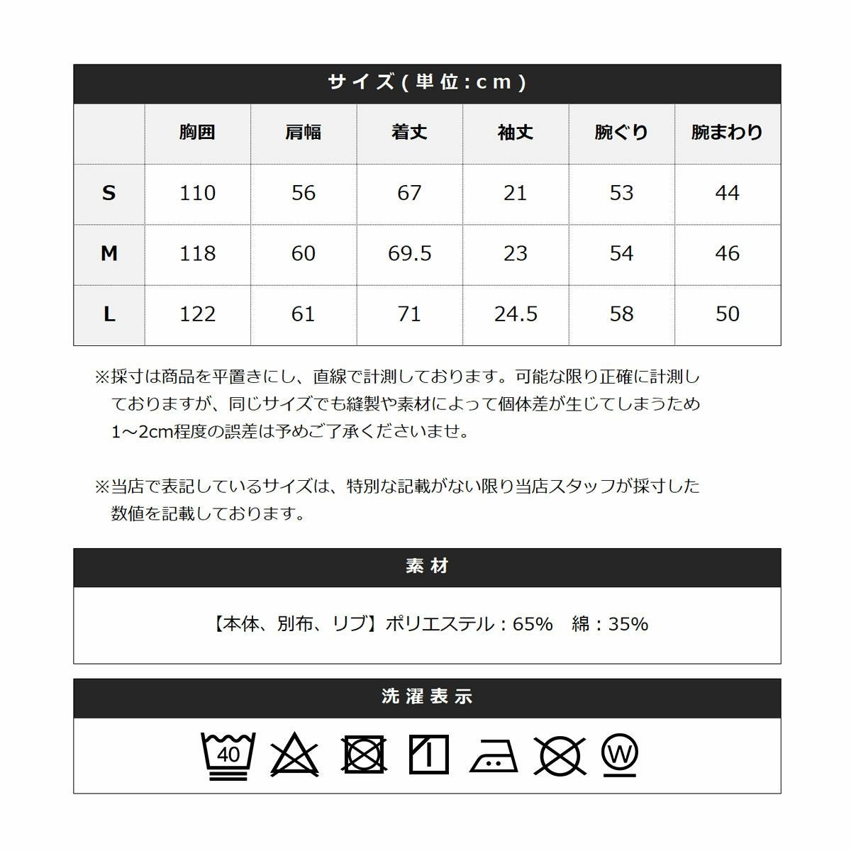 ※商品特性、縫製や素材により同サイズでも、若干の誤差が生じてしまうことを予めご了承ください。
