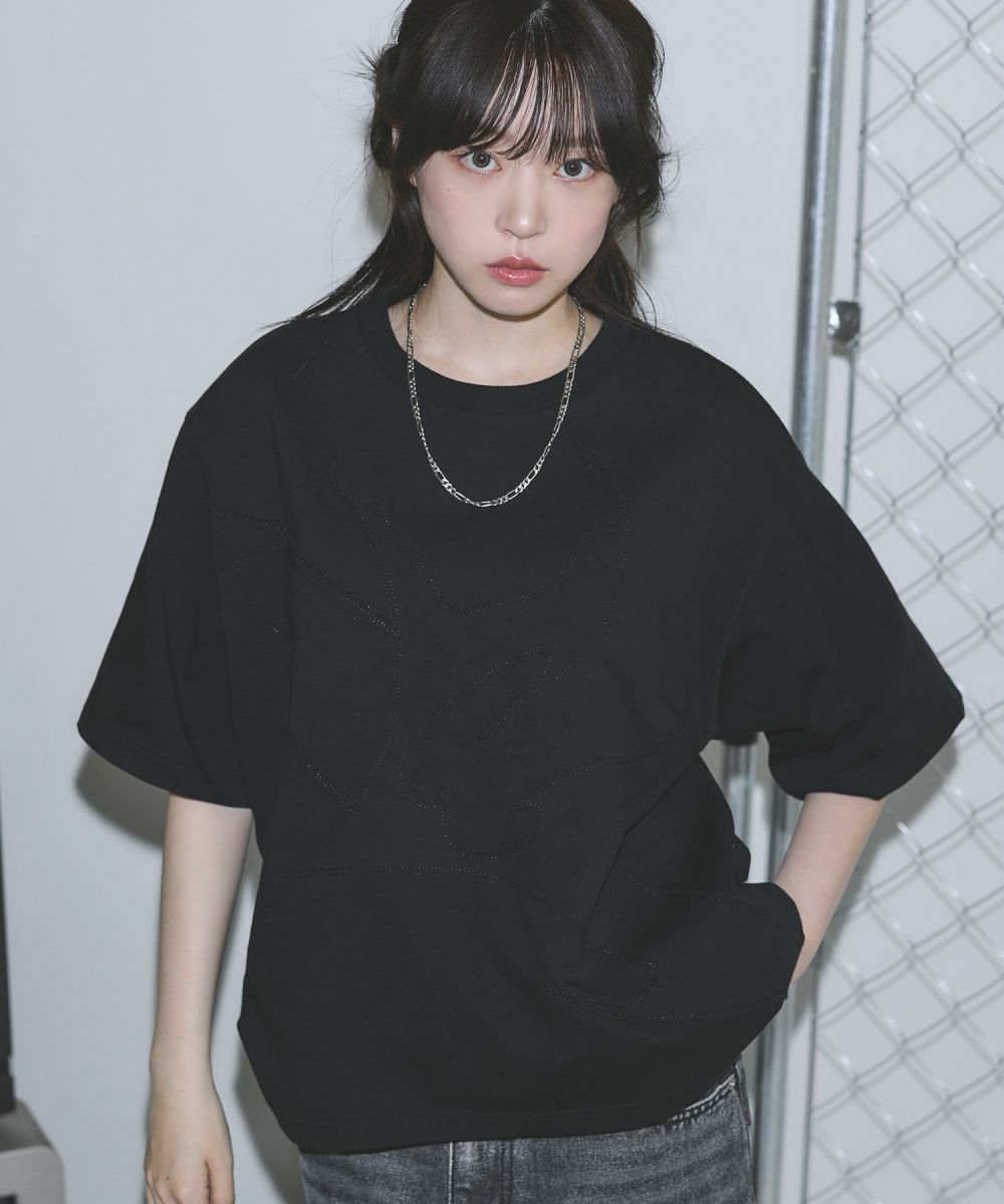 ・やや短めの丈感と、程よくゆとりのあるボックスシルエットが今っぽさを演出します。