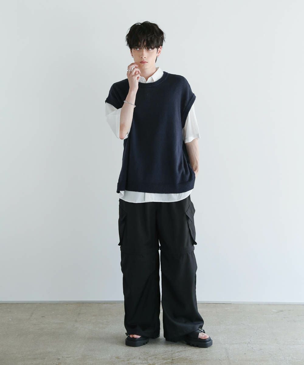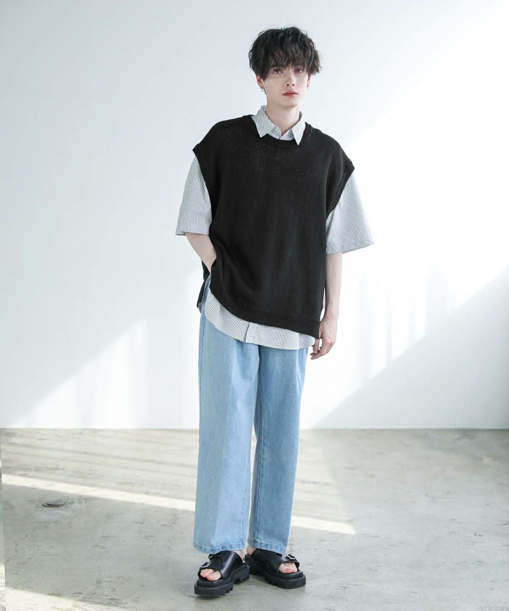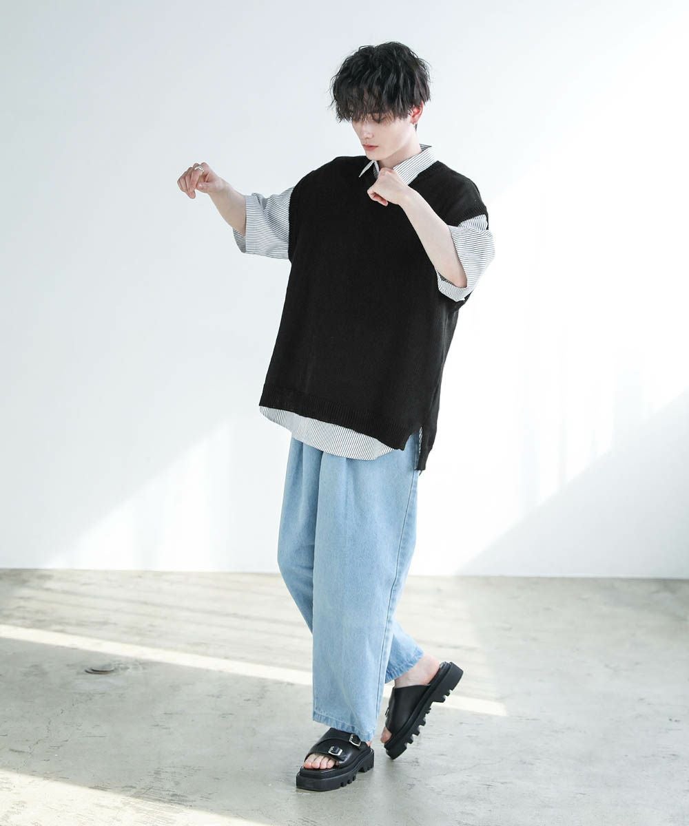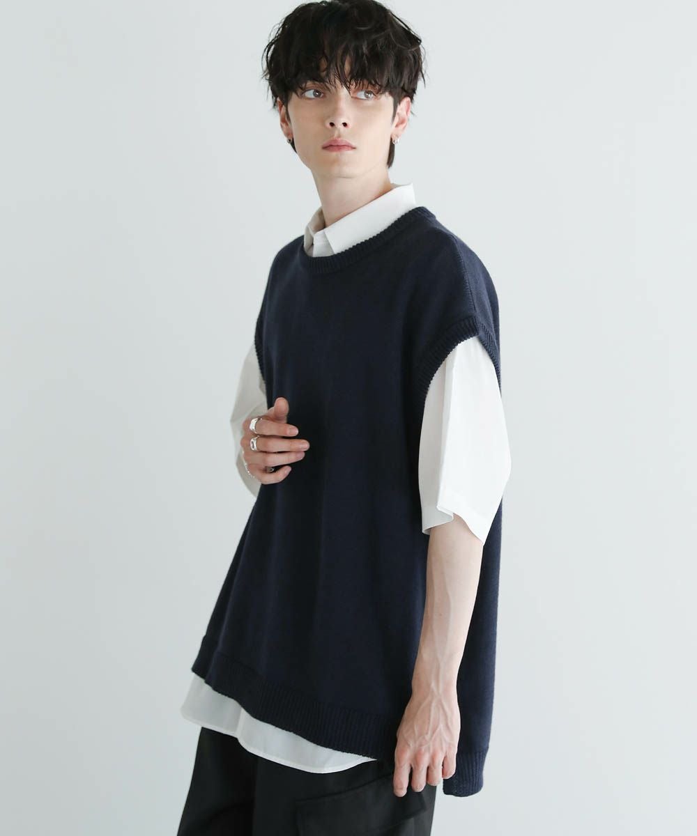 清涼感のある綿麻素材を使用したサマーニットベスト。シンプルになりがちな春夏の着こなしに変化をつけられるアイテムです。