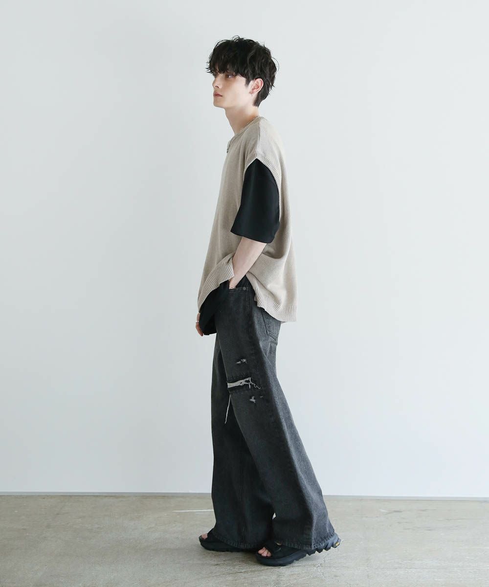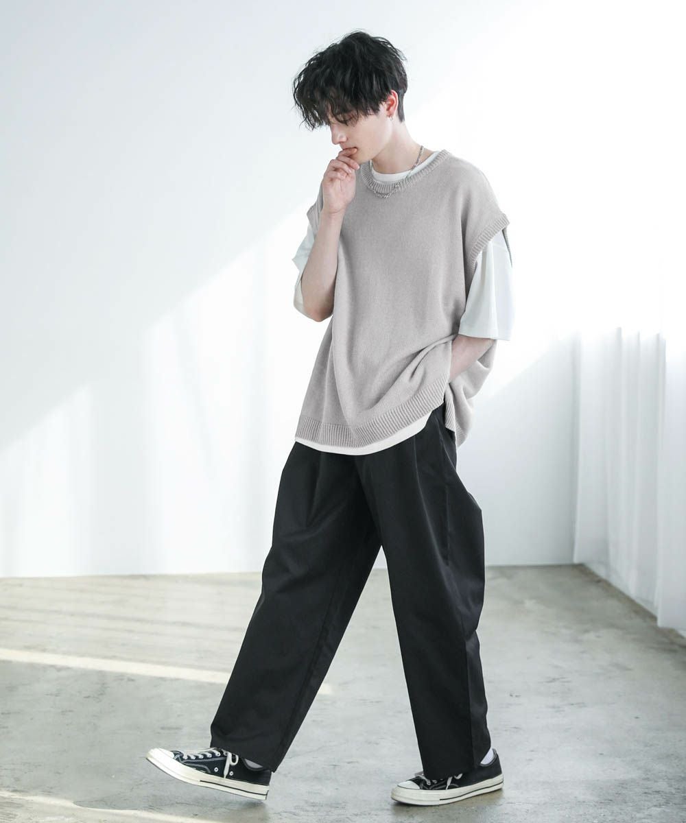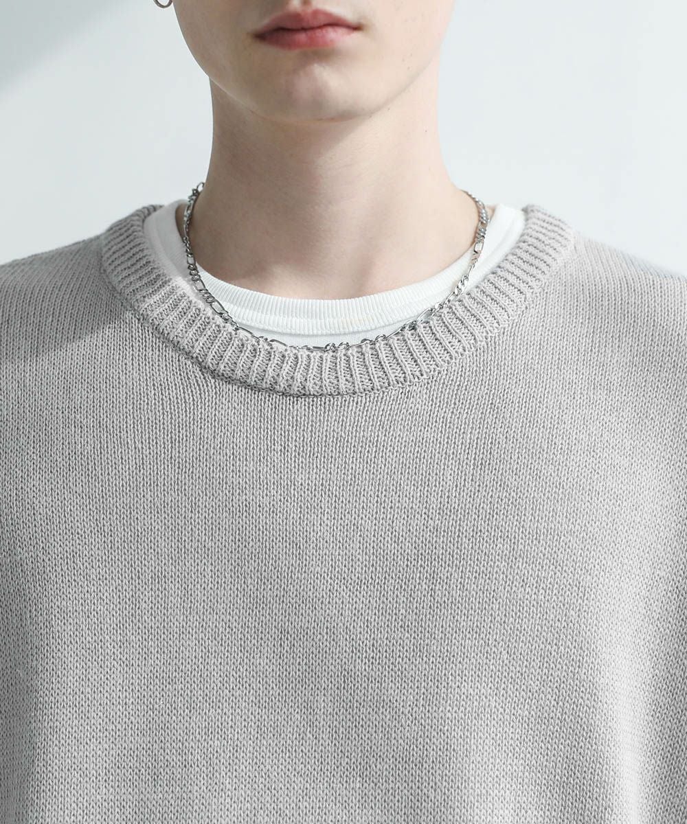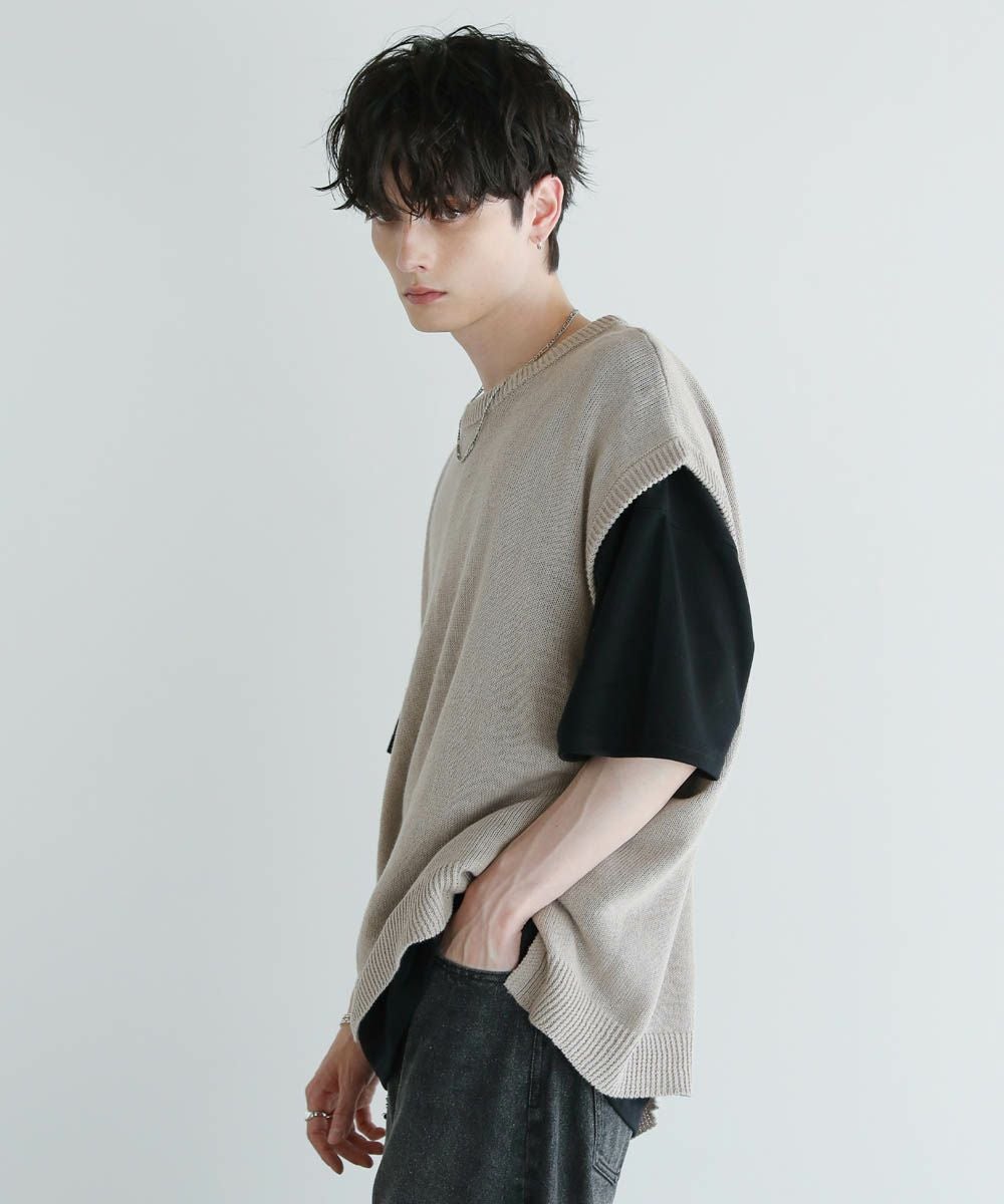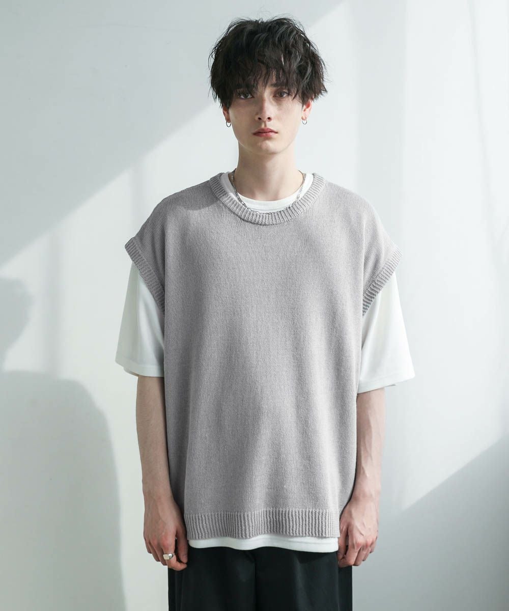 ゆったりとしたシルエットと浅めに入ったサイドスリットが抜け感をプラス。腕ぐりにゆとりを持たせているので、ビッグTやルーズシャツなど大きめのインナーともレイヤードがキレイに決まります。サラッとした肌触り&通気性に優れた薄手の綿麻ニット素材は暑い季節も快適に着用できます。季節感のあるリラックスした雰囲気&着こなしの幅を広げてくれるおすすめの1枚です。