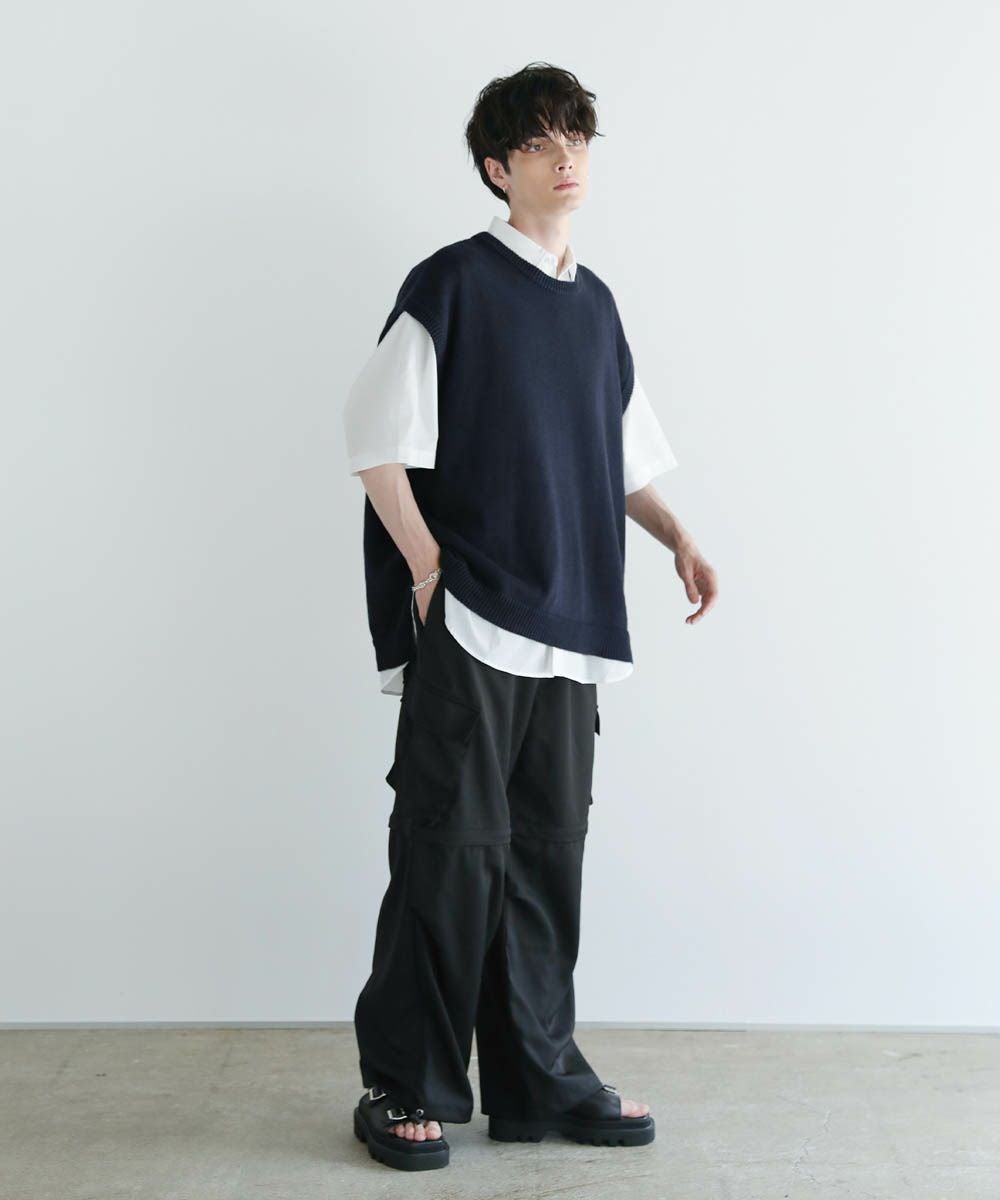 お手持ちのビッグTやシャツと合わせて旬の着こなしを楽しめます。ワイドデニムやカーゴパンツ、バギーパンツなど太めのボトムと合わせてリラックス感のある着こなしがおすすめです。インナーには半袖だけでなく長袖を入れたりと、着こなし次第で春から秋までロングシーズン活躍します。