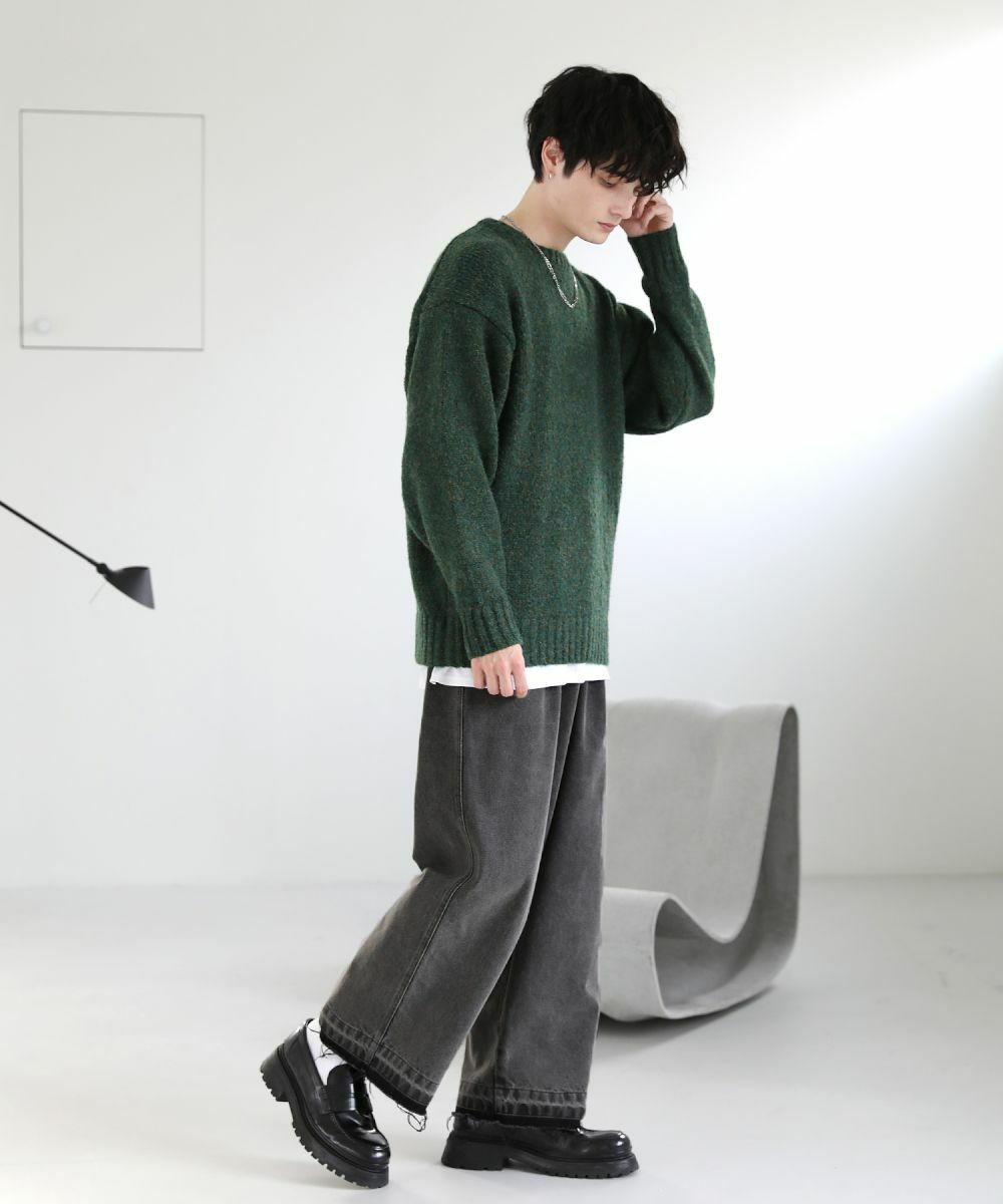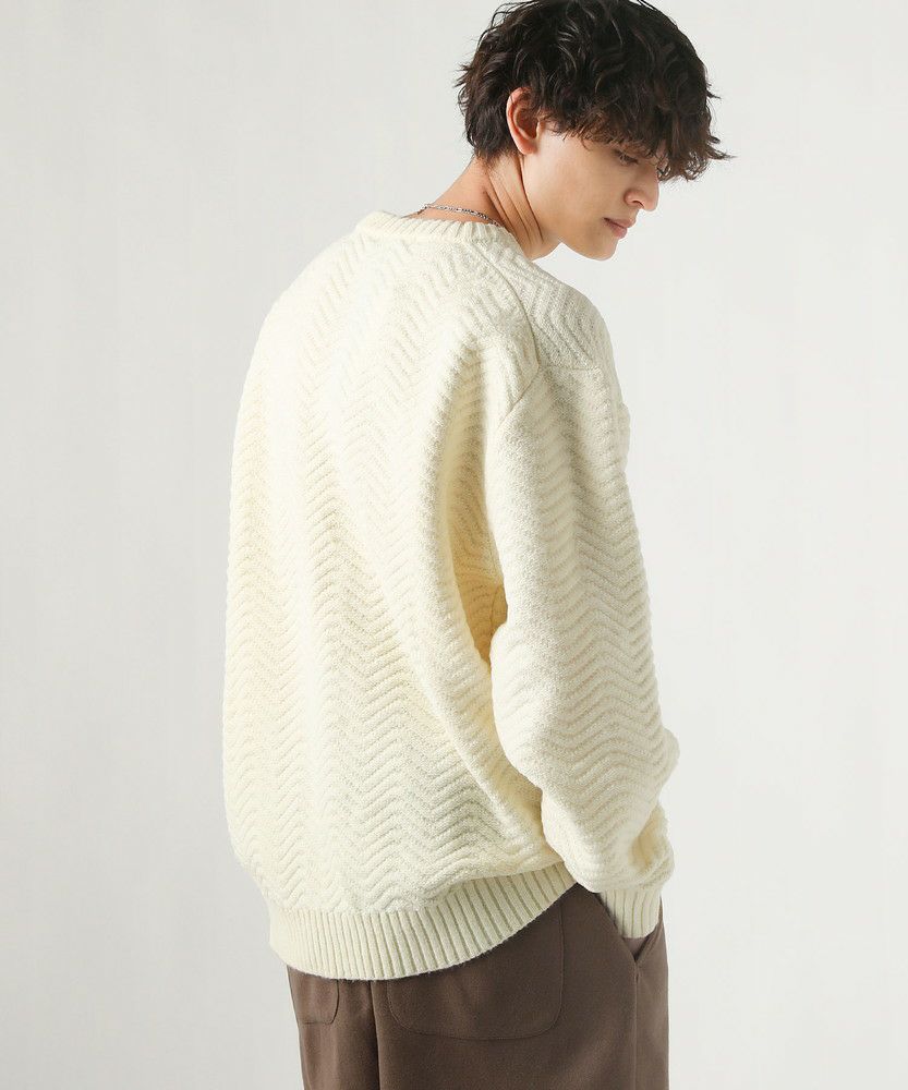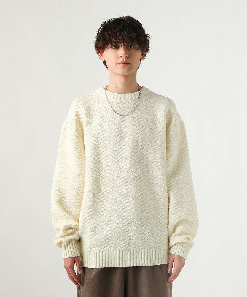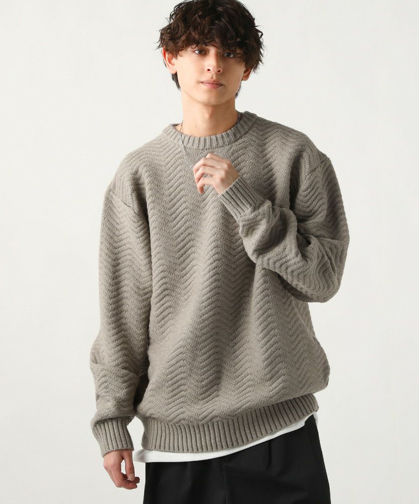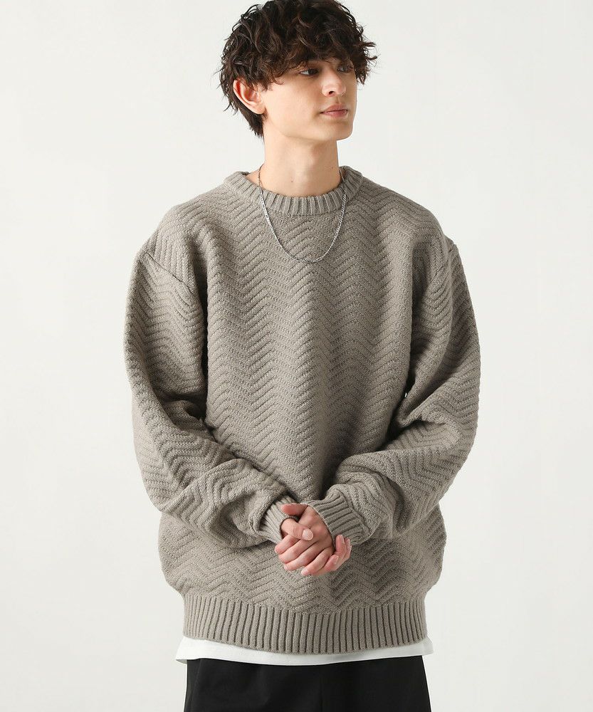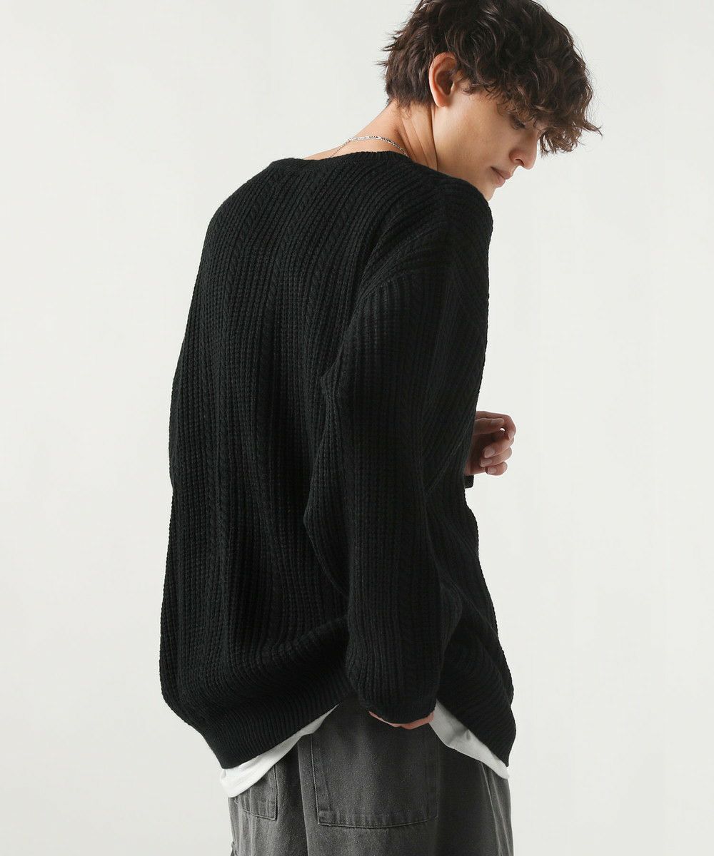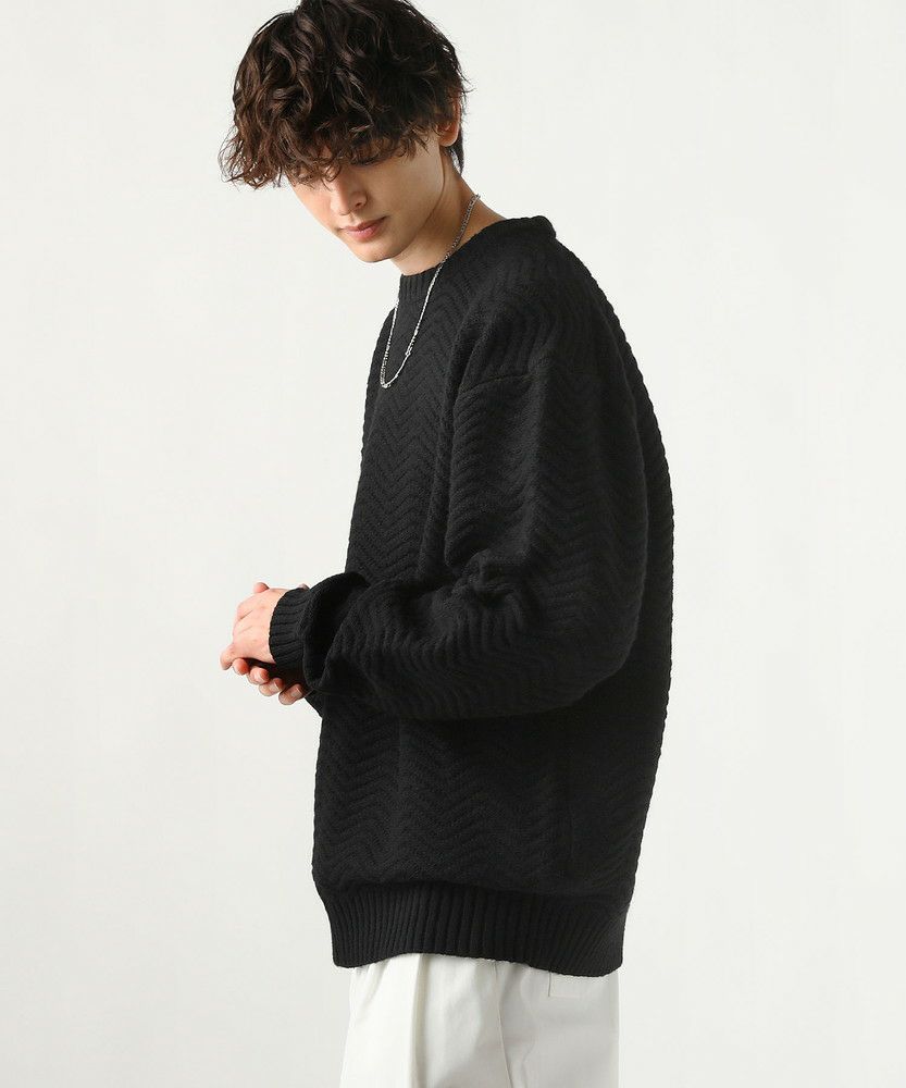 ビックシルエット配色ハンドステッチ長袖クルーネックニット
