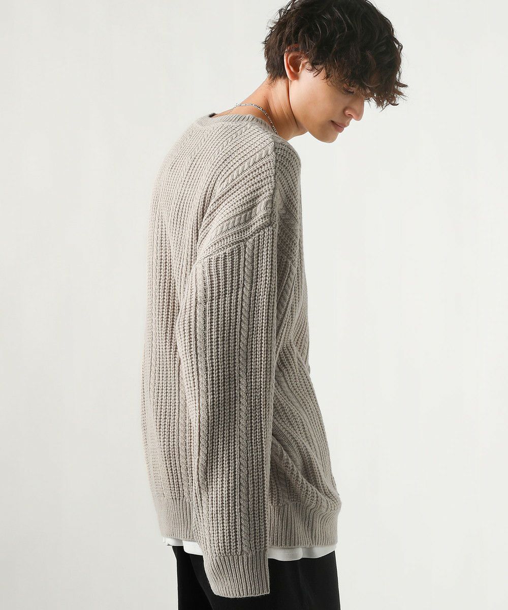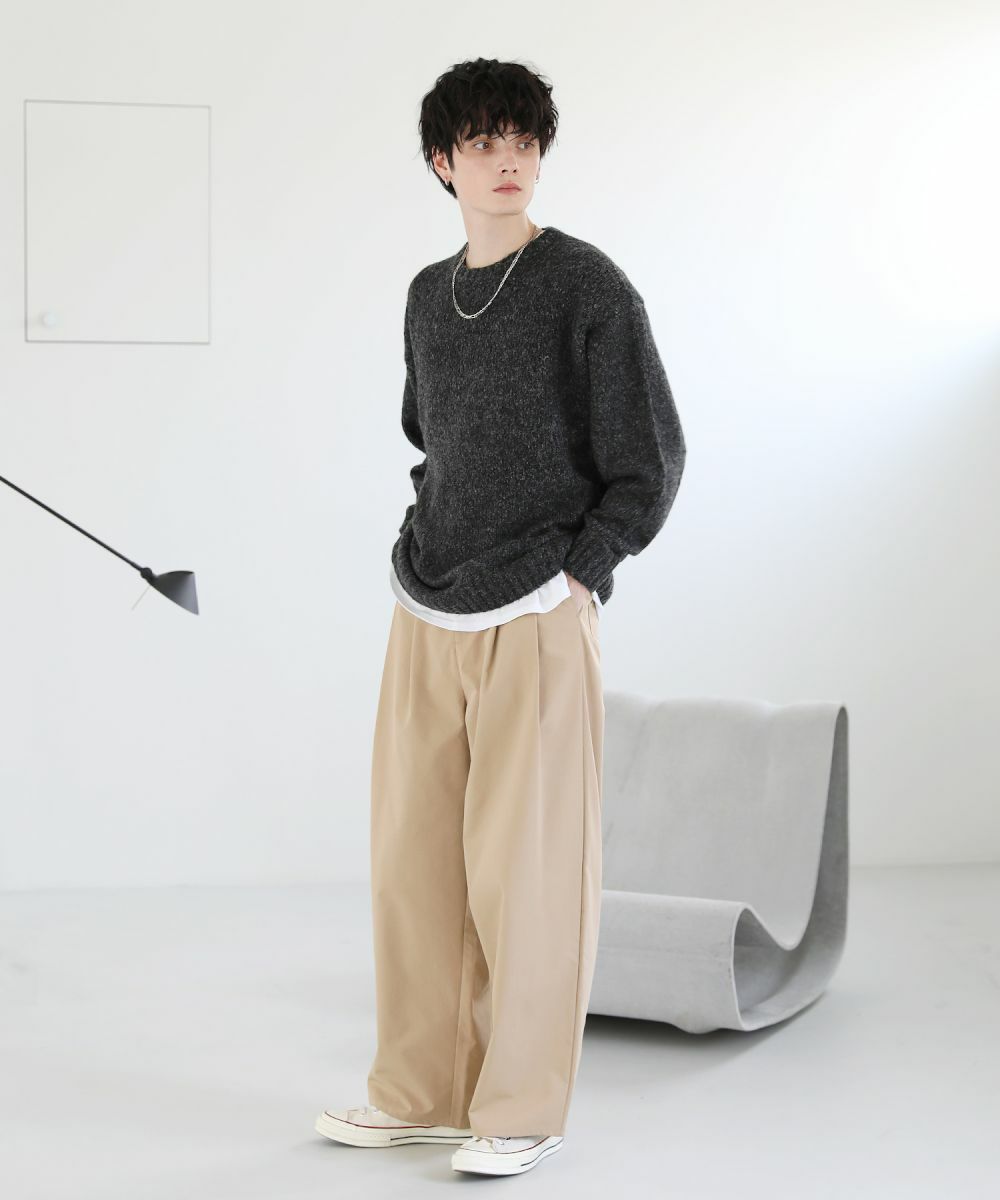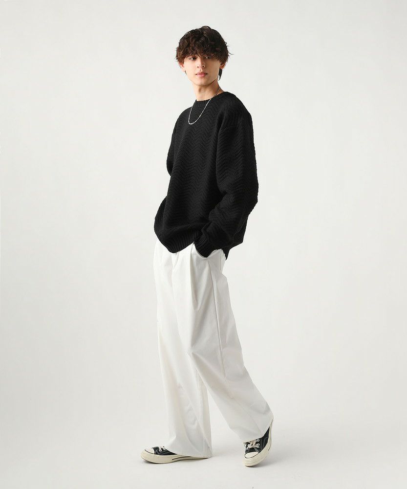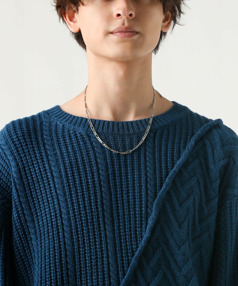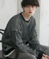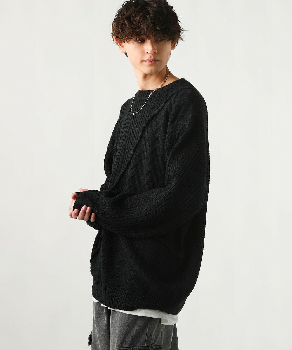 ビックシルエット配色ハンドステッチ長袖クルーネックニット