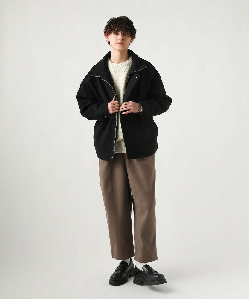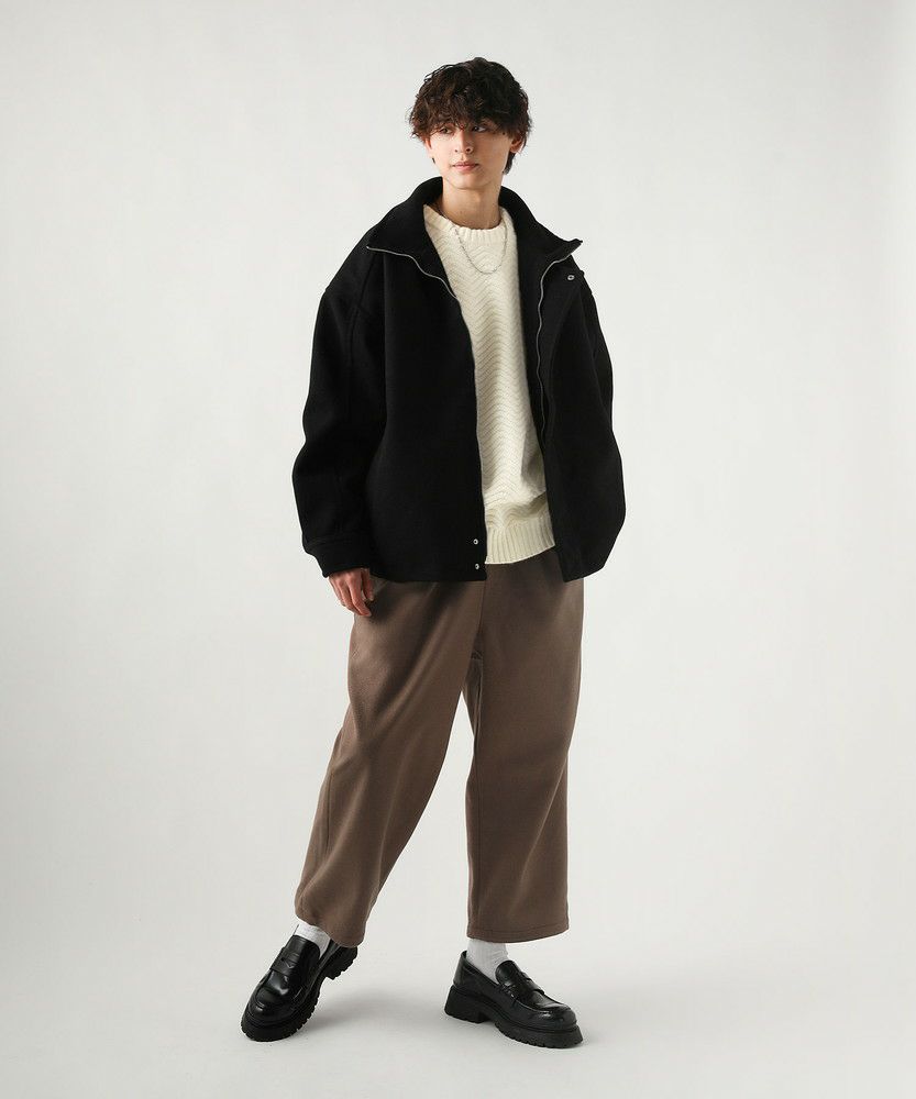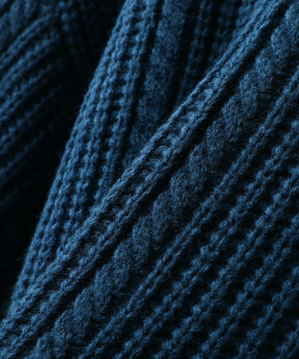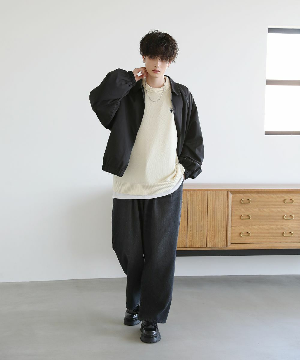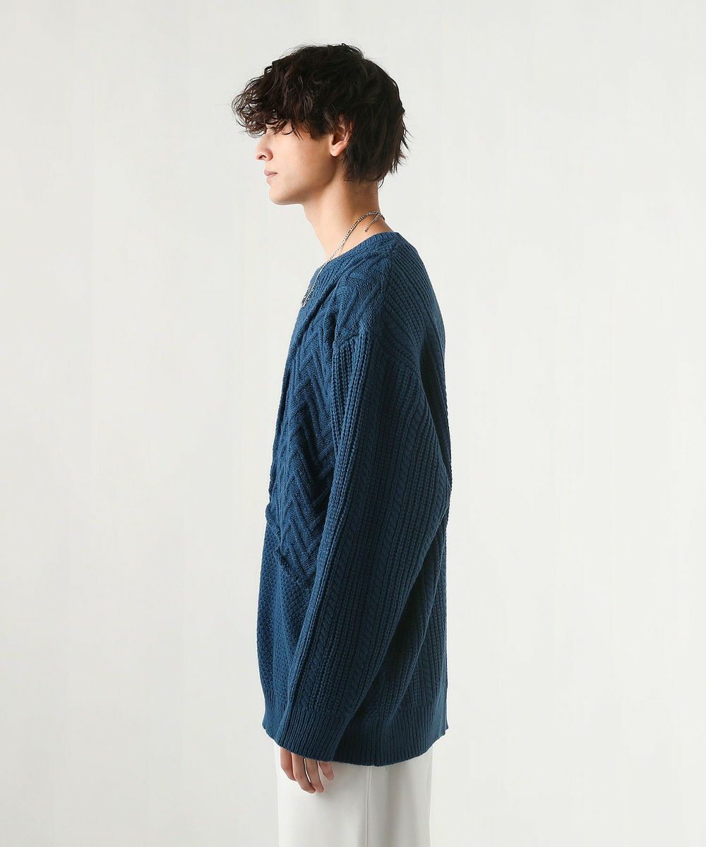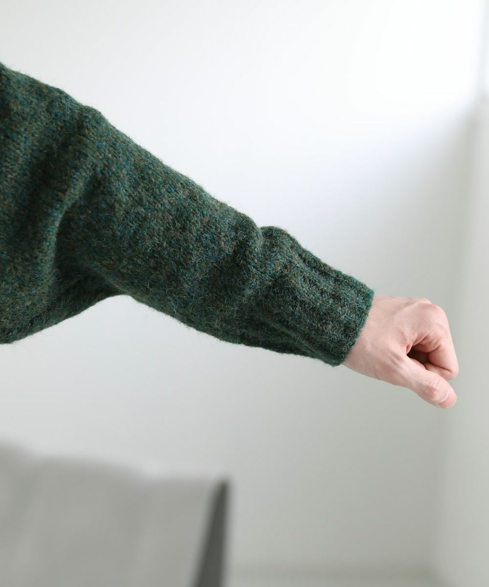 ビックシルエット配色ハンドステッチ長袖クルーネックニット