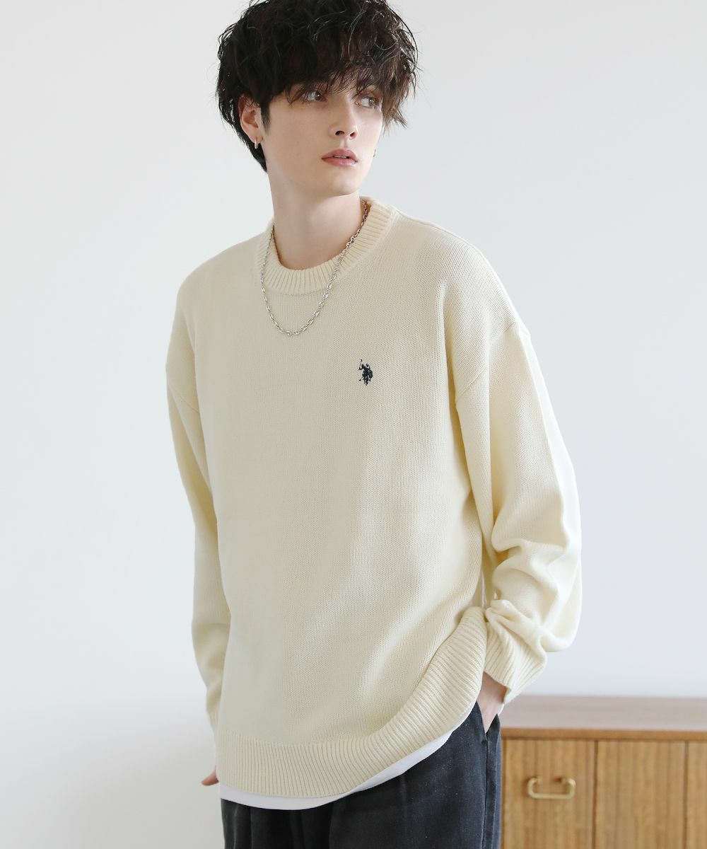 U.S. POLO ASSN. 別注 ワンポイントロゴクルーネックニット