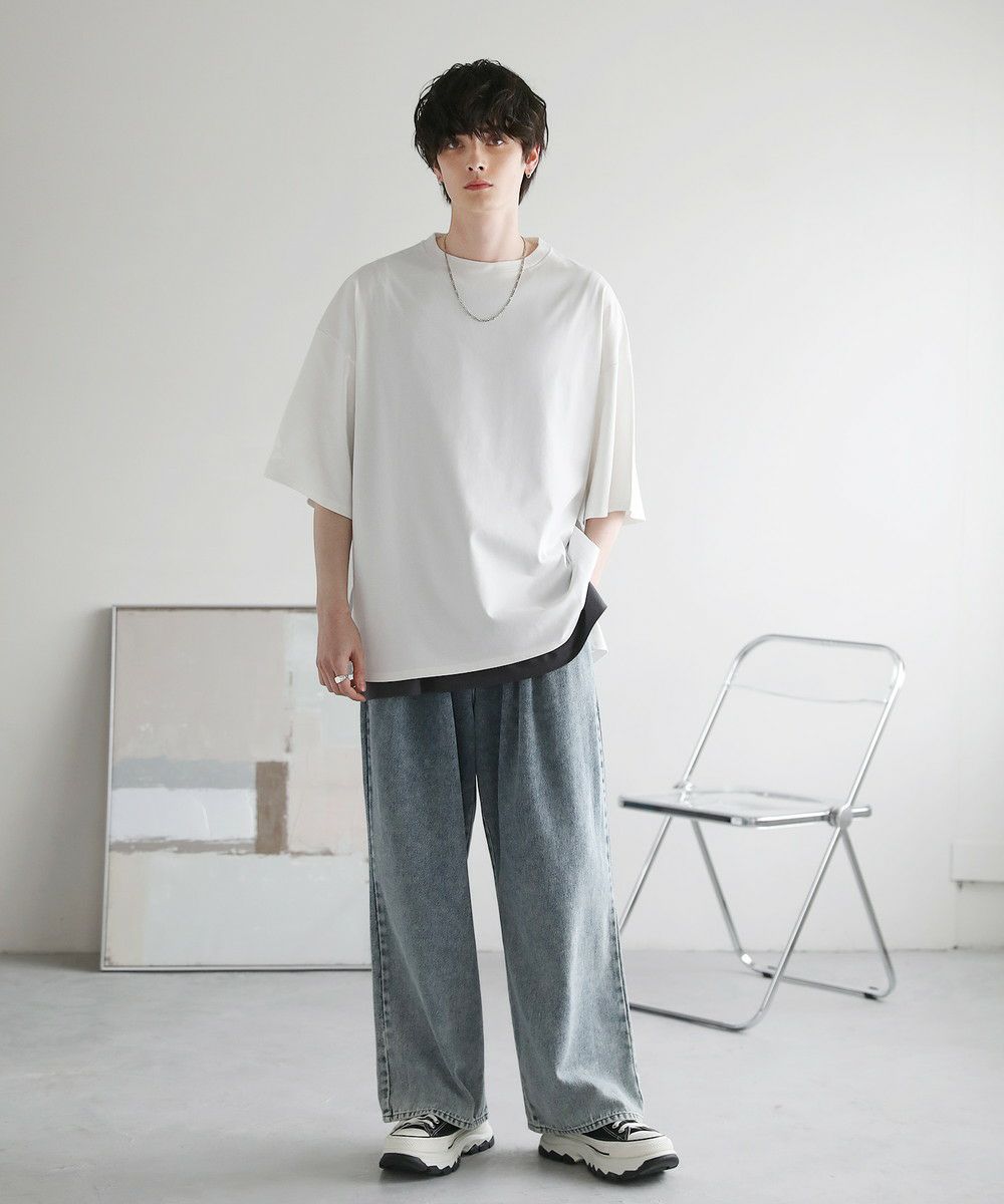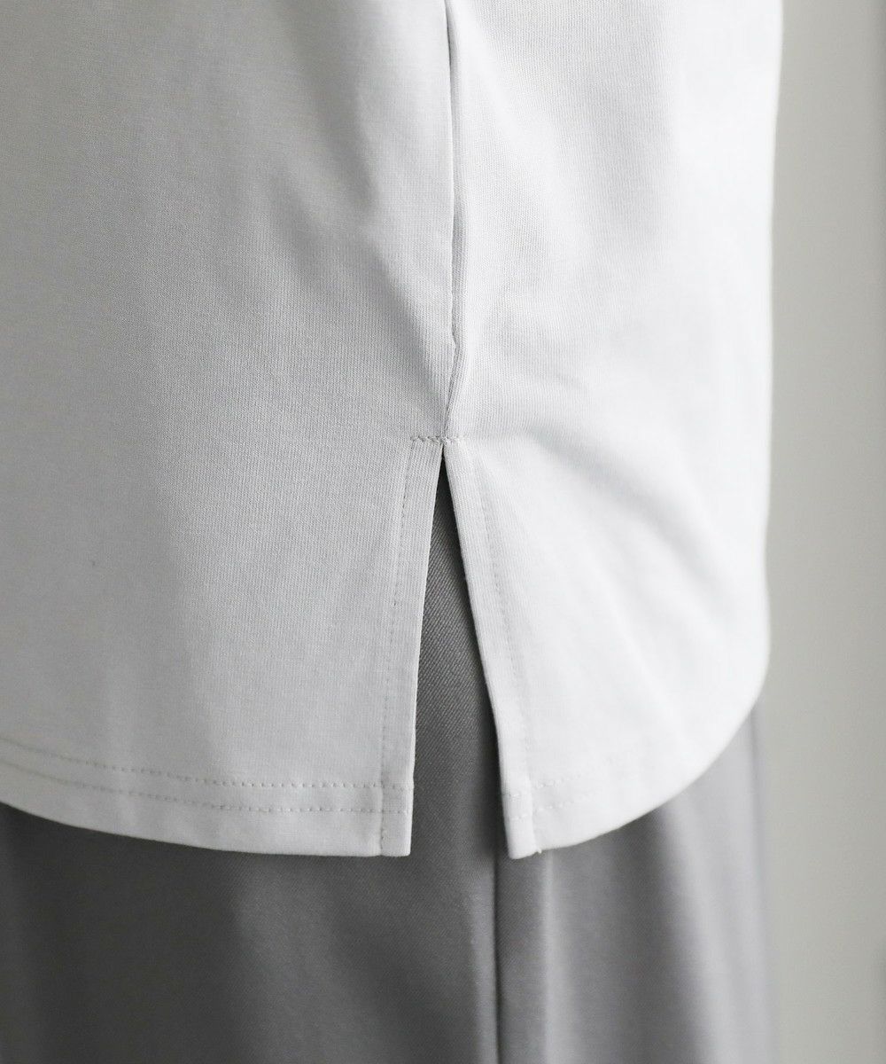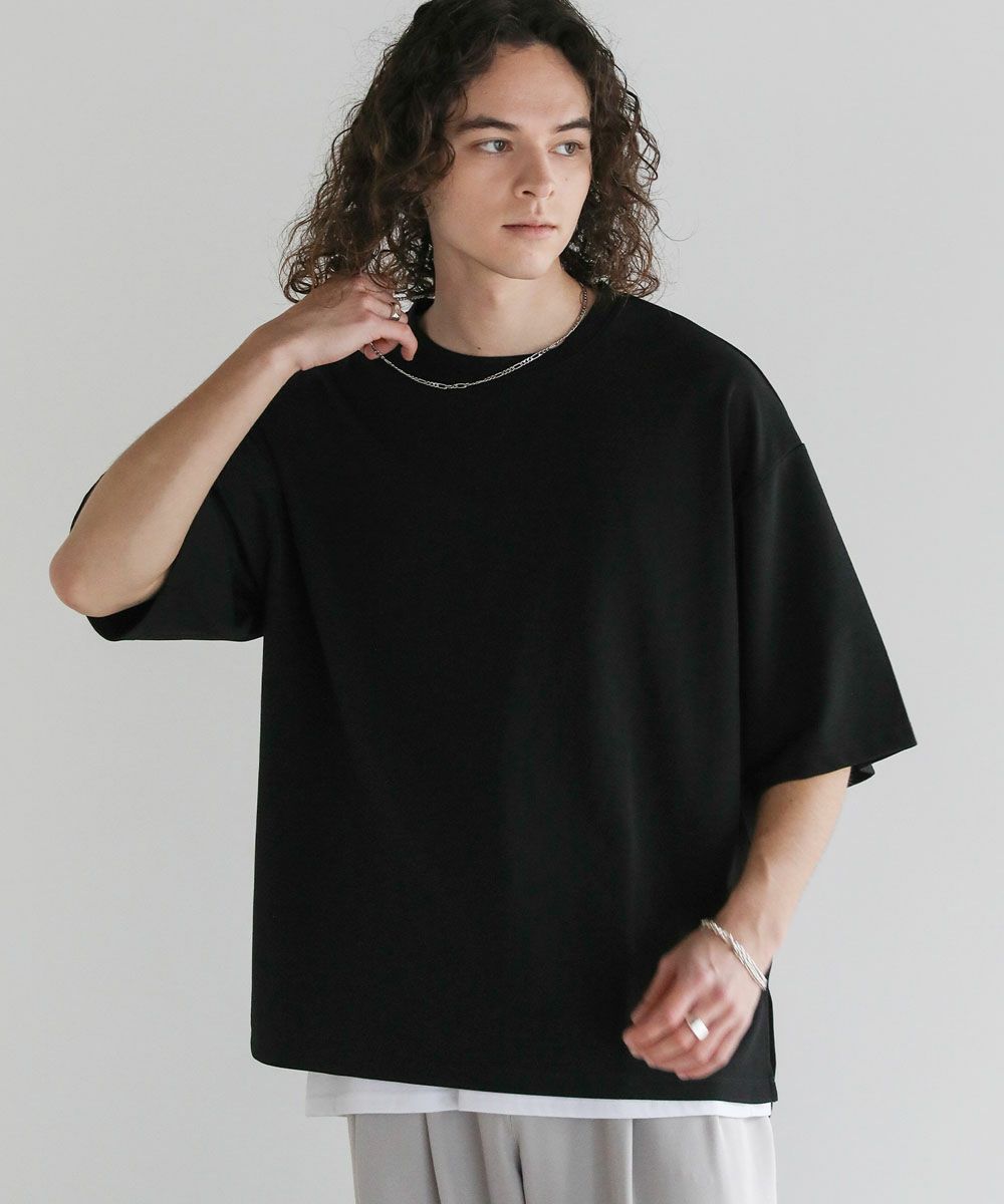 UVカット梨地裾スリット入りオーバーサイズ5分袖Tシャツ