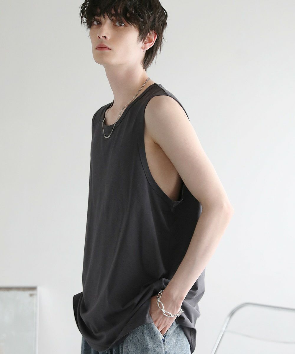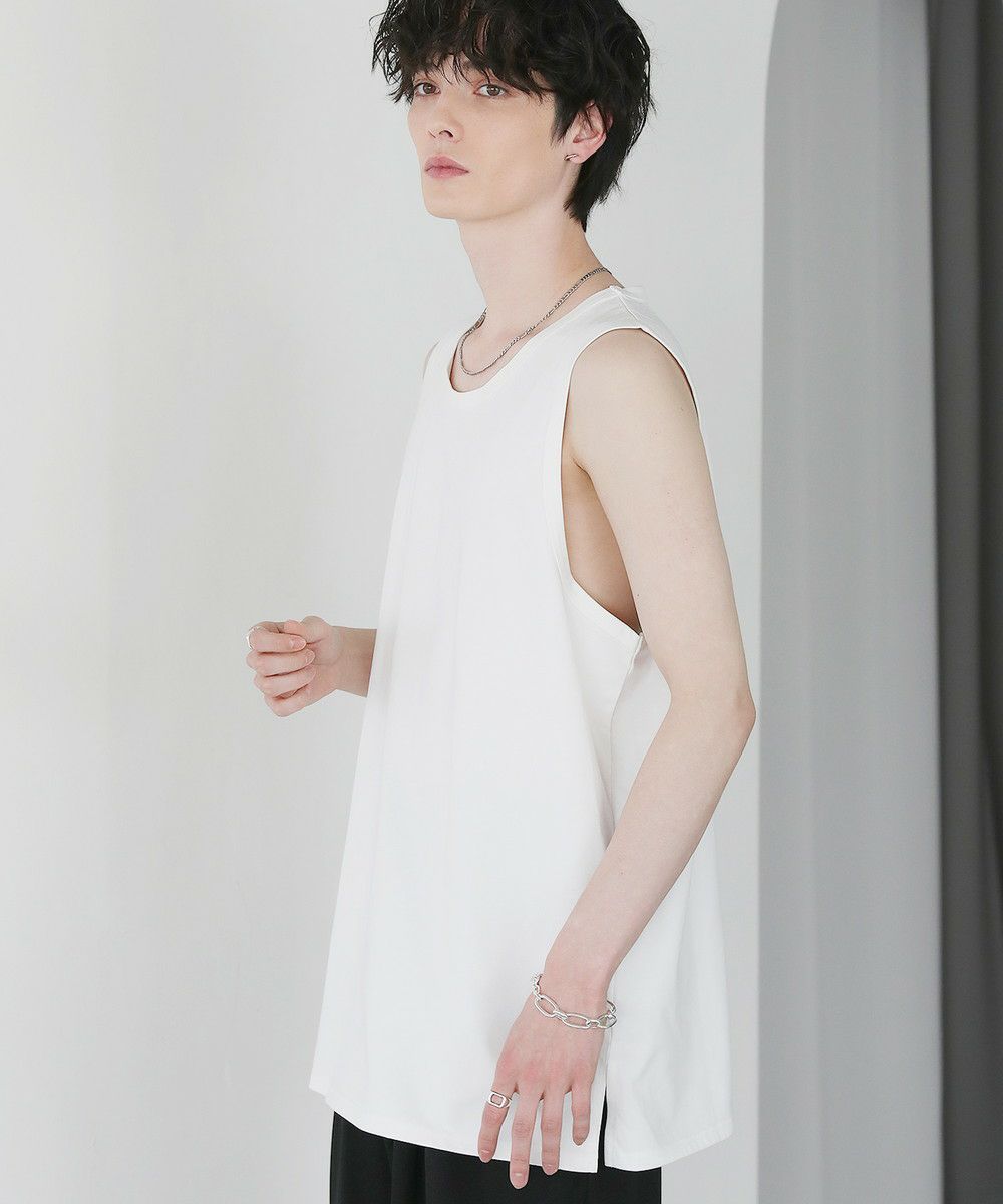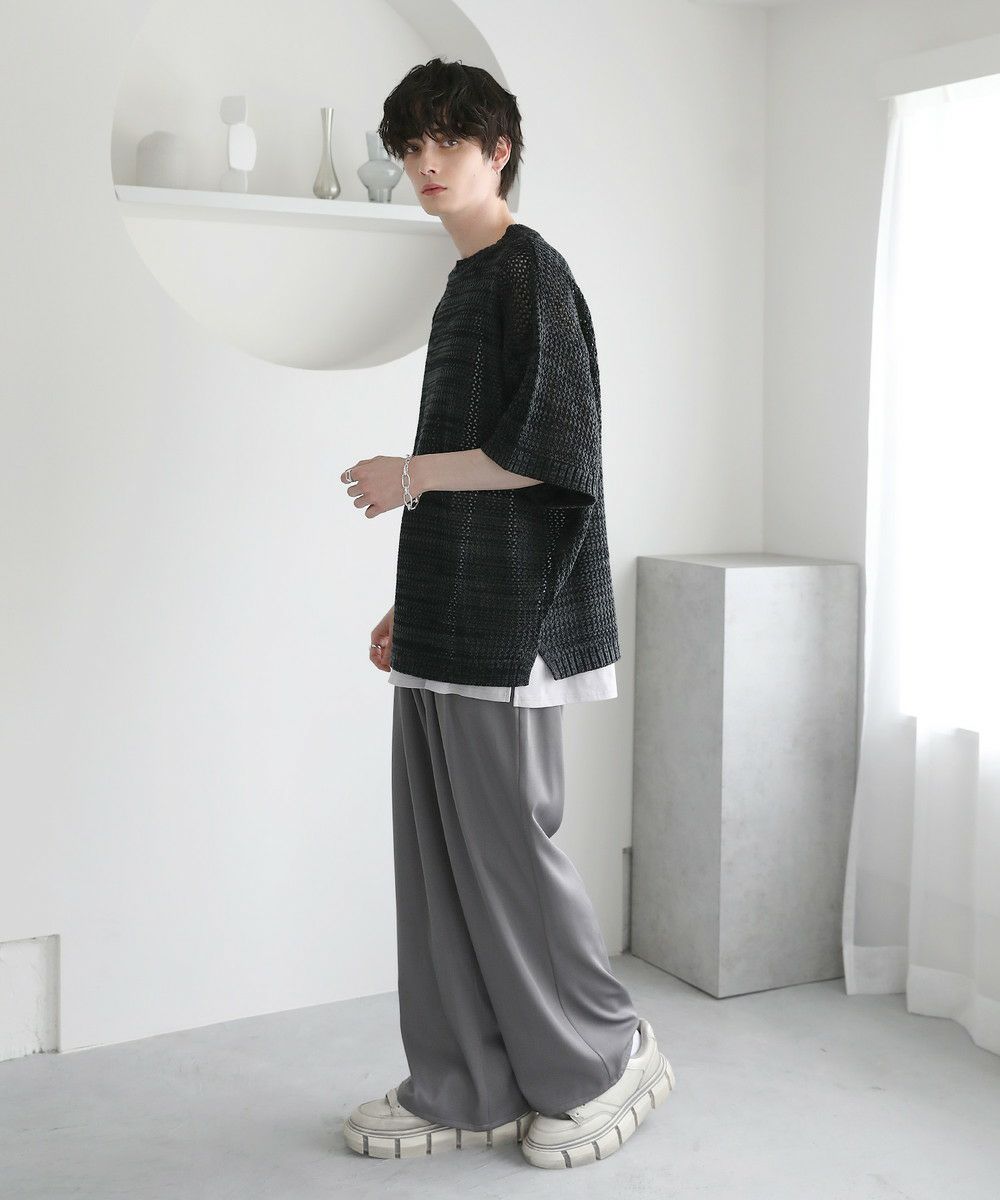 UVカット梨地裾スリット入りオーバーサイズ5分袖Tシャツ