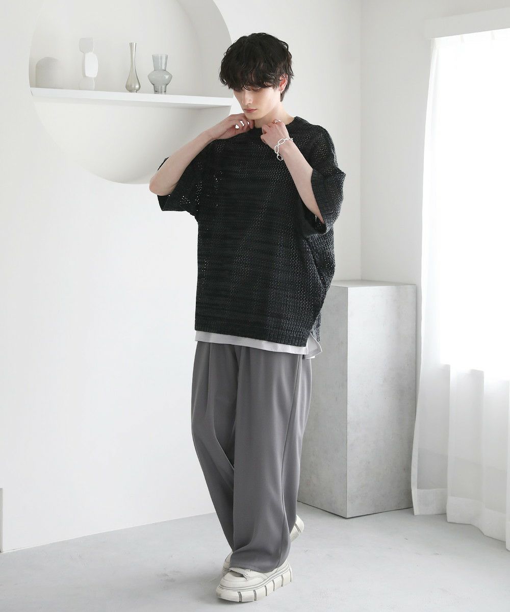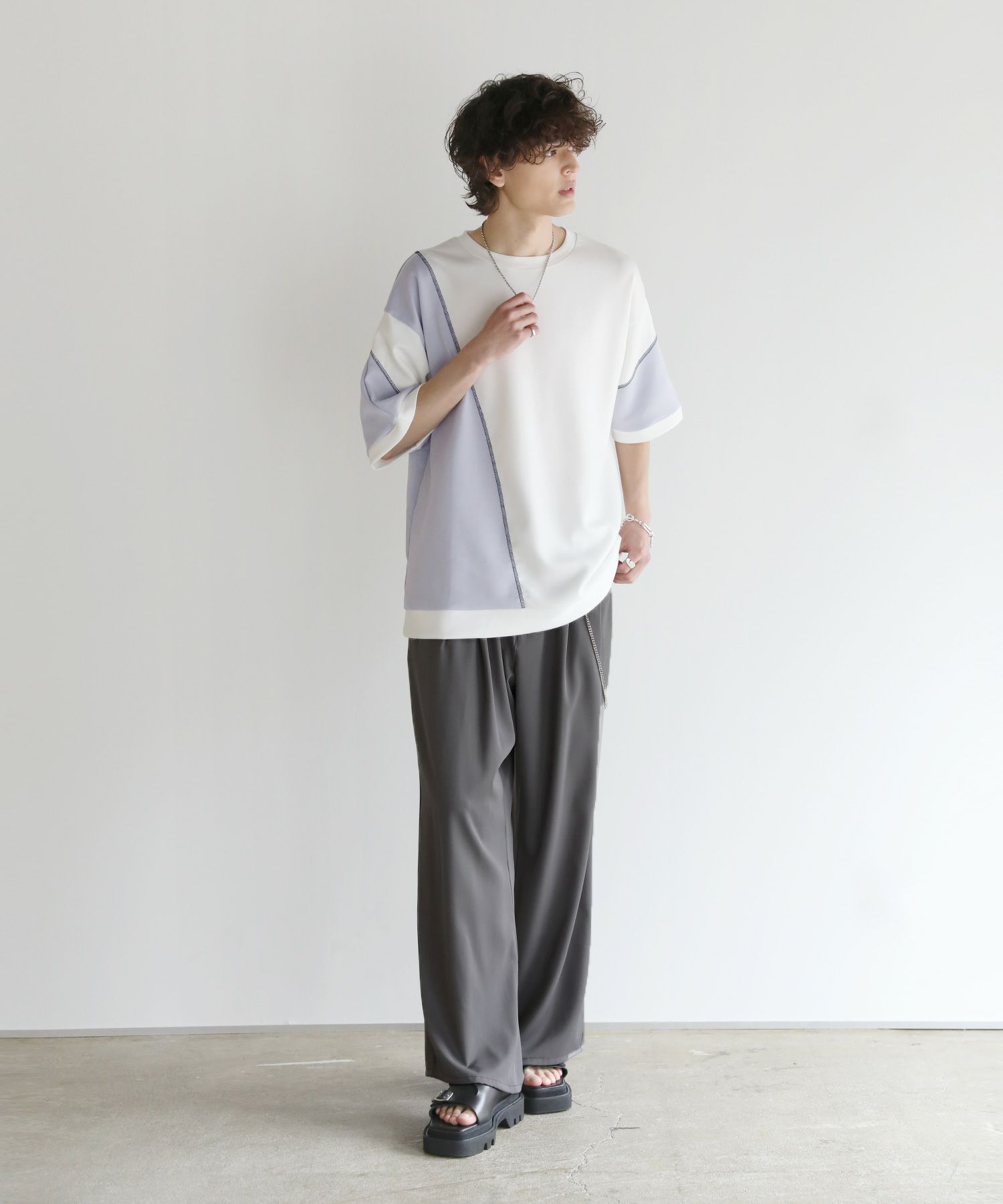 接触冷感/ロックステッチ切替半袖プルオーバーTシャツ
