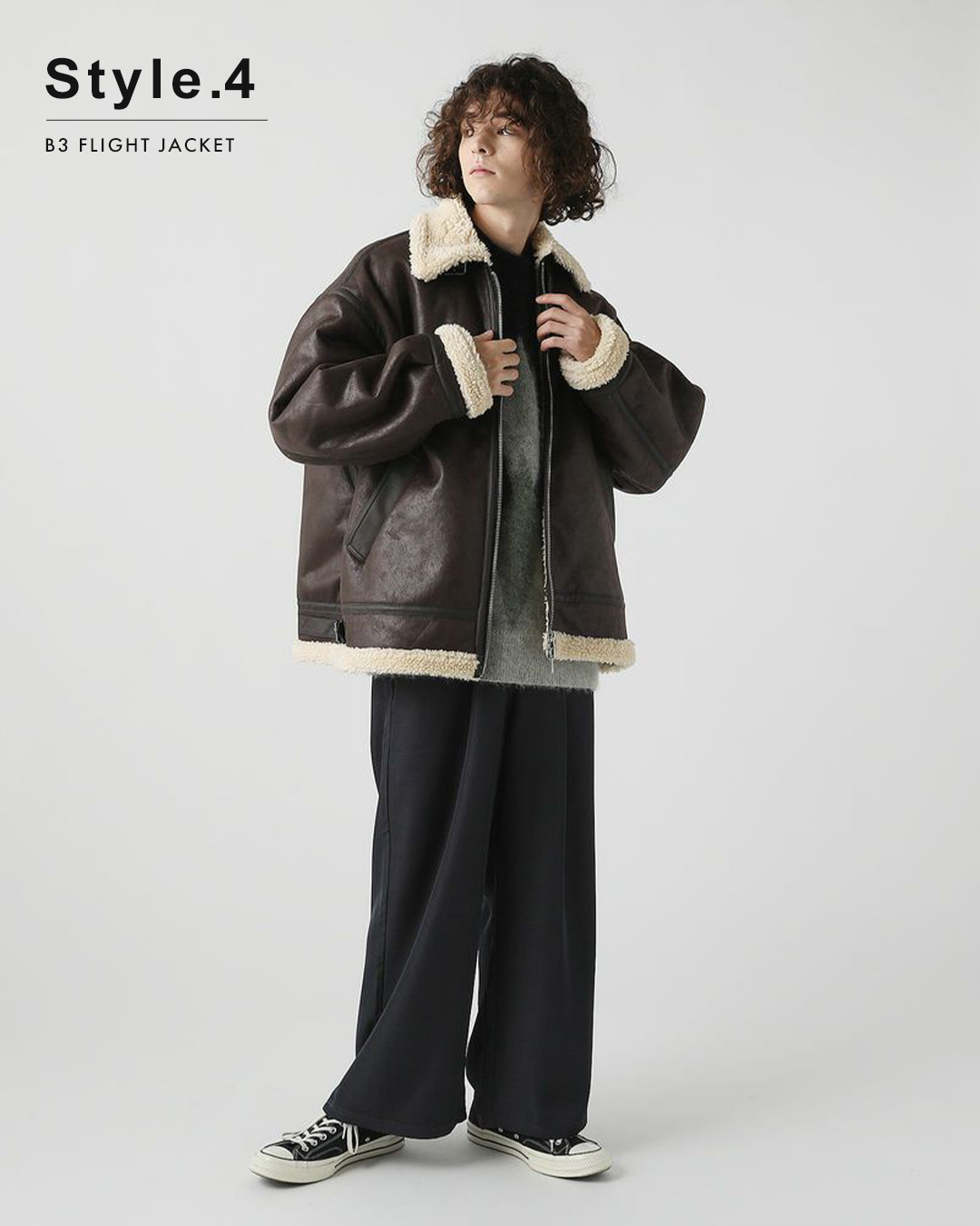防寒性に優れたB3ムートンフライトジャケット。落ち着いたトーンの全体像に、配色のパイピングが目を惹く冬の大人アウターです。見た目には重厚感がありますが着心地は重たくなく、動きやすいのもポイントです。