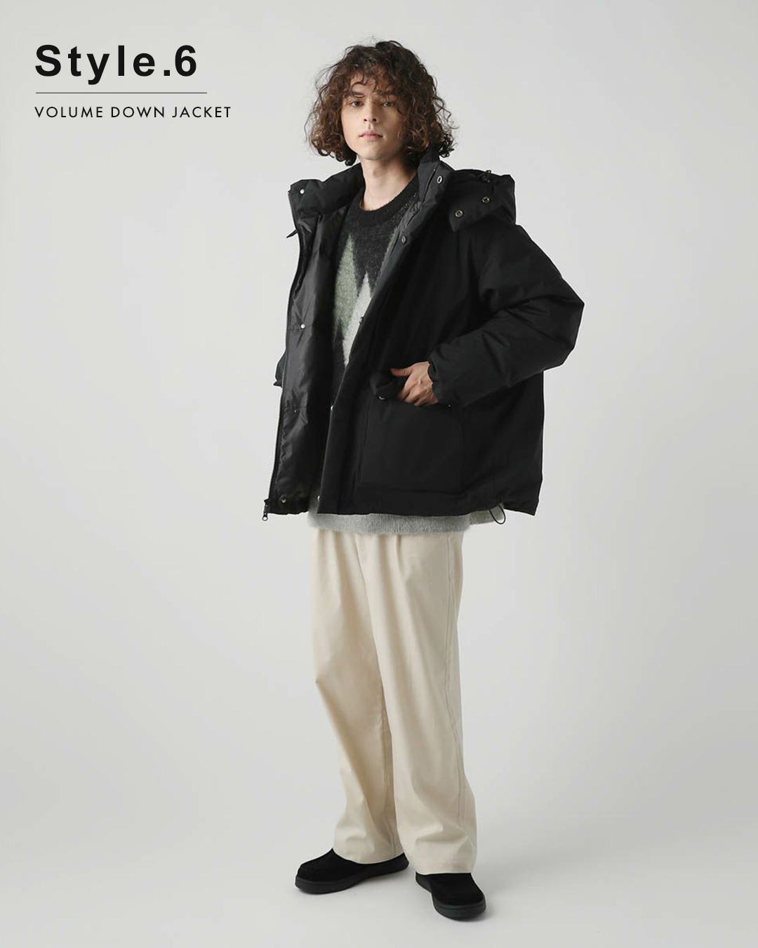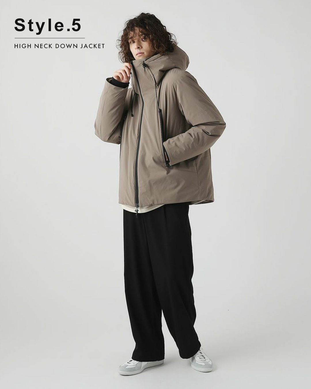 320gのダウンを詰めたボリューム感のあるダウンジャケット。フードの取り外しが可能なので、その日の気分でフード・スタンドネックと着こなしの変化を楽しめます。